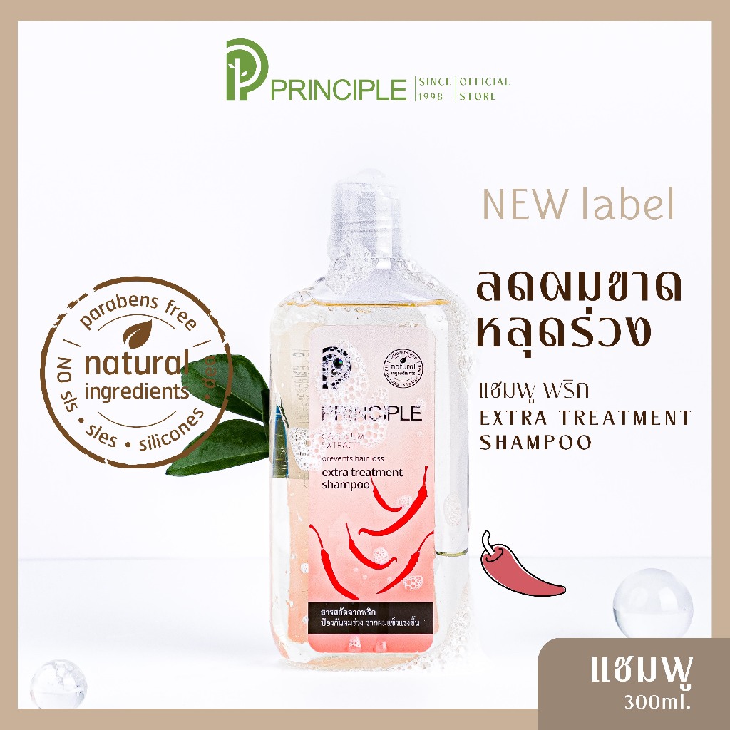 แชมพูสมุนไพร Principle พริ้นซิเพิล แชมพูพริก ลดผมร่วง ผมงอกใหม่ ไม่มีซัลเฟต ไม่มีซิลิโคน 3-4 ชิ้น