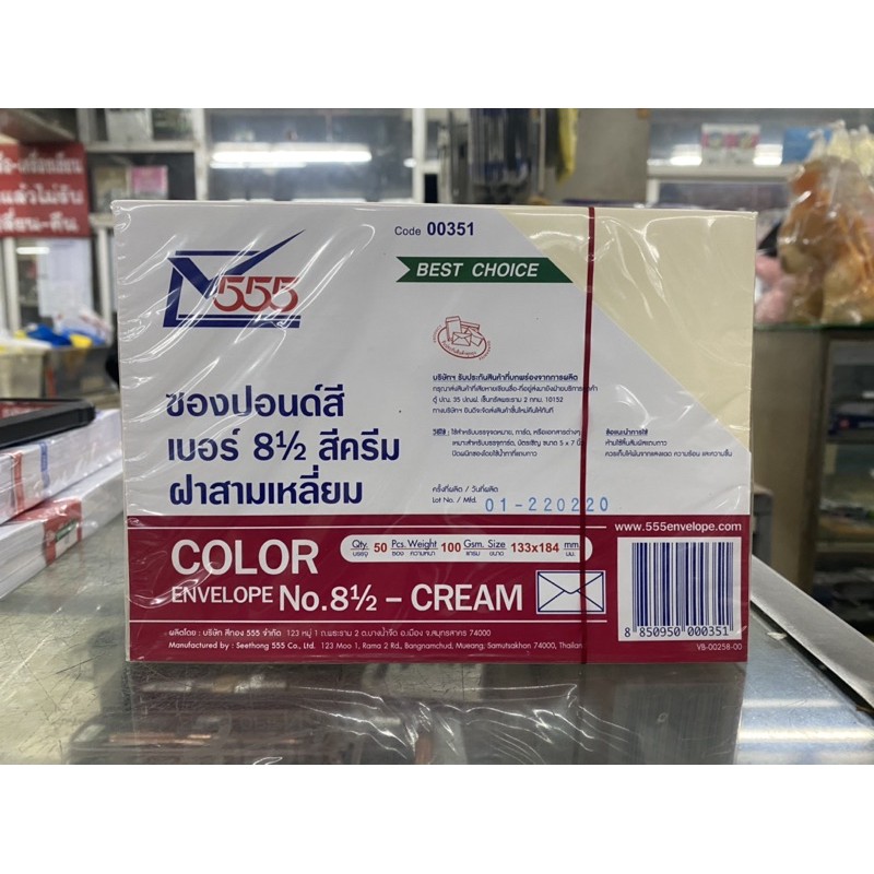 ซองปอนด์สีครีม ซองจดหมาย เบอร์ 8 1/2 ขนาด 13.3*18.4ซม. แพค 50ซอง ยี่ห้อ 555 พร้อมส่ง มีเก็บปลายทาง COD