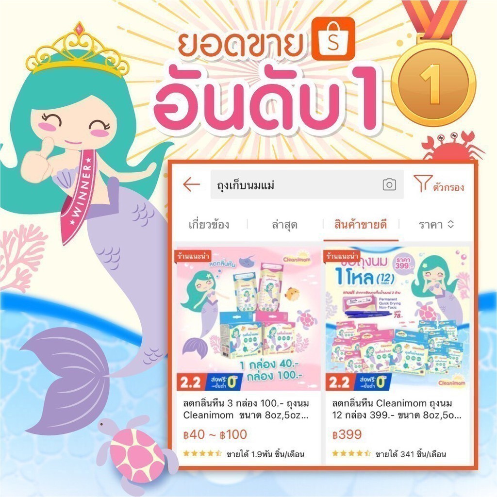 ยกลัง 12กล่อง ถุงเก็บน้ำนมแม่ Cleanimom ช่วยลดกลิ่นหืนในน้ำนมแม่ ถุงหนา ตั้งได้ ขนาด 3oz/5oz/8oz ลายเงือกน้อยสุดน่ารัก