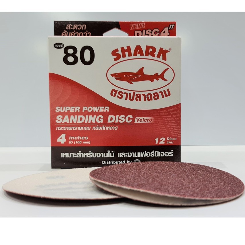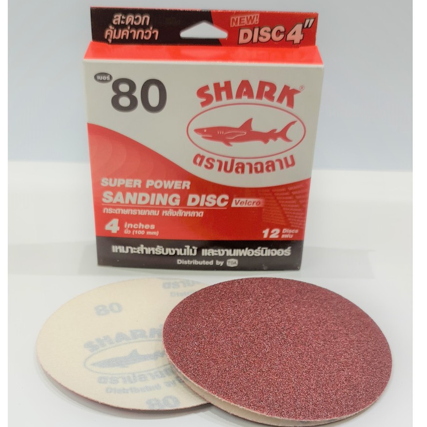 TOA กระดาษทรายกลม ตรา ปลาฉลาม ขนาด 4 นิ้ว (12แผ่น/กล่อง) ( หลังสักหลาด ตีนตุ๊กแก หนามเตย ) ทีโอเอ Shark