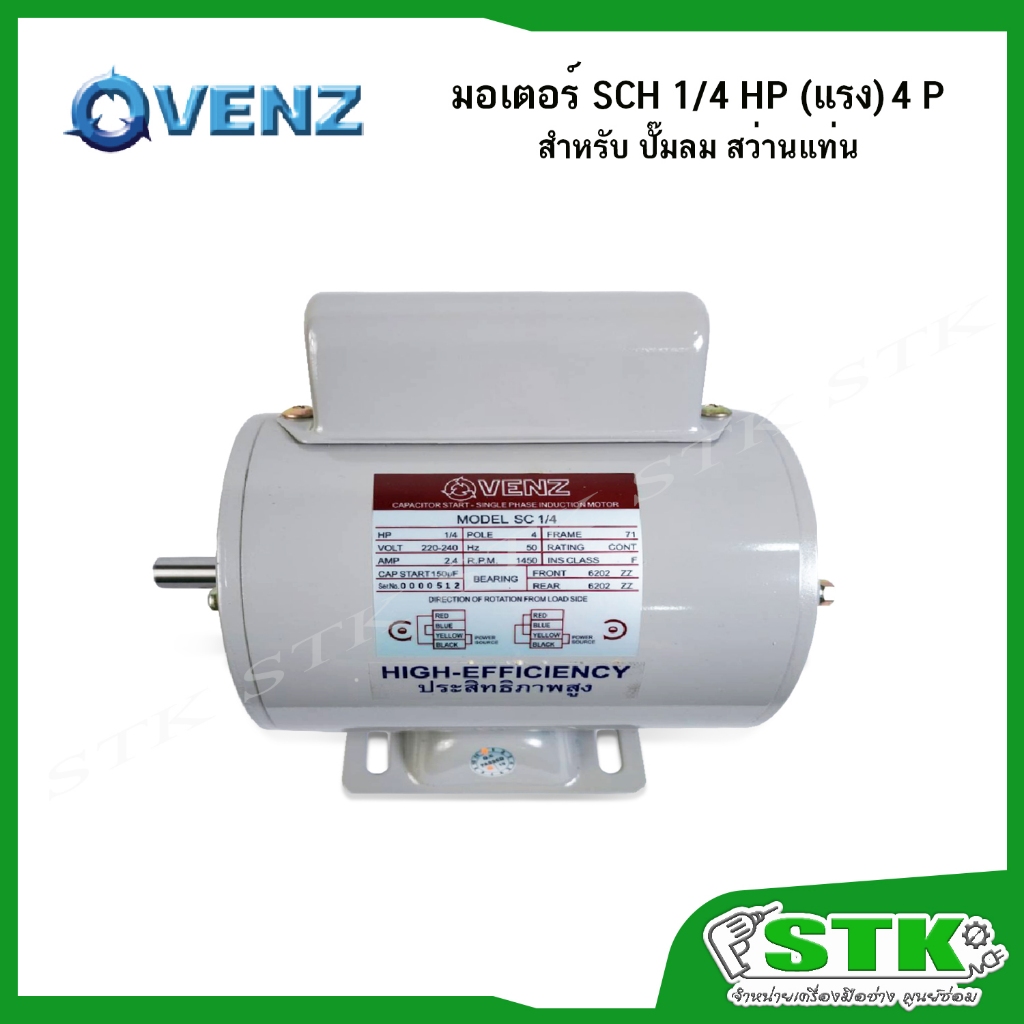 VENZ มอเตอร์ SCH 1/4 (แรง)4P 220วัตต์ สำหรับปั๊มลม สว่านแท่น