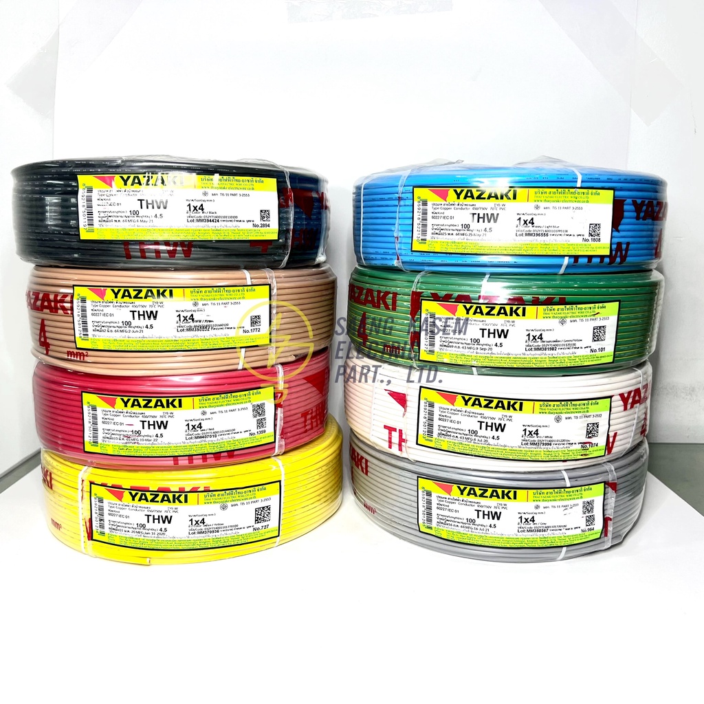ราคารวมVAT❗️สายไฟ THW THAI YAZAKI 1x4 sq.mm ยาว 100 เมตร มีให้เลือกทุกสี
