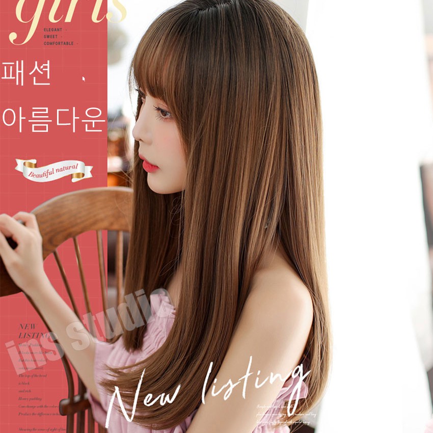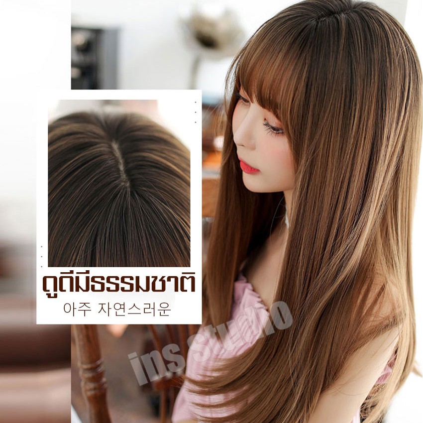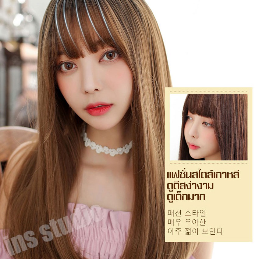 Barsamiea แฮร์พีชผมดัดลอน ยาวปะไหล่ น้ำตาลคาลาเมล วิกผมผู้หญิง วิกหน้าม้า แฮร์พีชทนความร้อน เส้นไหมเกาหลี เสริมผมหนา