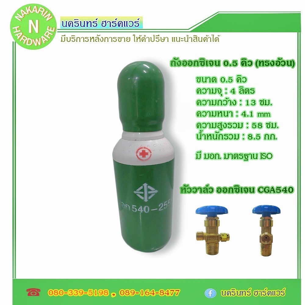 ถังออกซิเจน 0.5 คิว (อ้วน) ถังใหม่ มือ 1 มีก๊าซเต็มถัง พร้อมใช้งาน ( ออกซิเจน Oxygen )