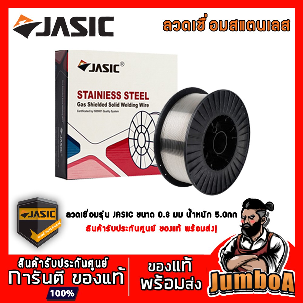 JASIC ลวดเชื่อม MIG ลวดแบบไม่ใช้แก๊ส , ลวดใช้แก๊ส , ลวดสแตเลส ขนาด 0.8mm. 5.0กก.