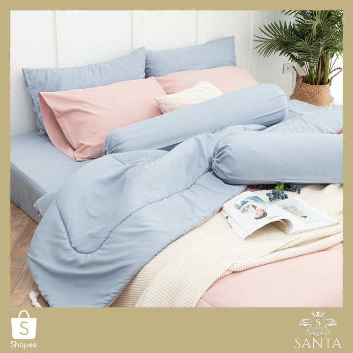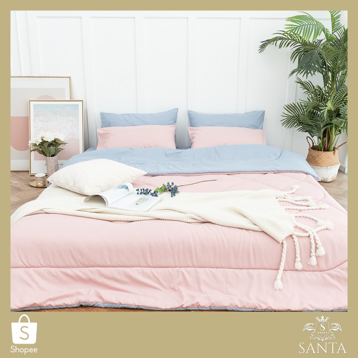 SANTA ชุด ผ้าปูที่นอน ผ้าห่ม ผ้านวม สีชมพู สีฟ้า