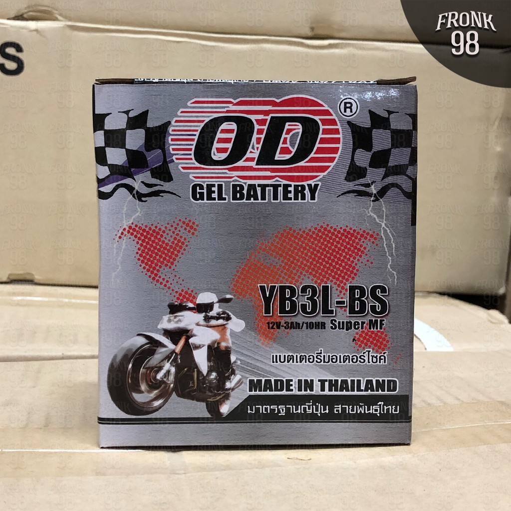 OD แบตเตอรี่ รุ่น YB3L-BS (12V 3AH) แบบแห้ง (สำหรับรถจักรยานยนต์)