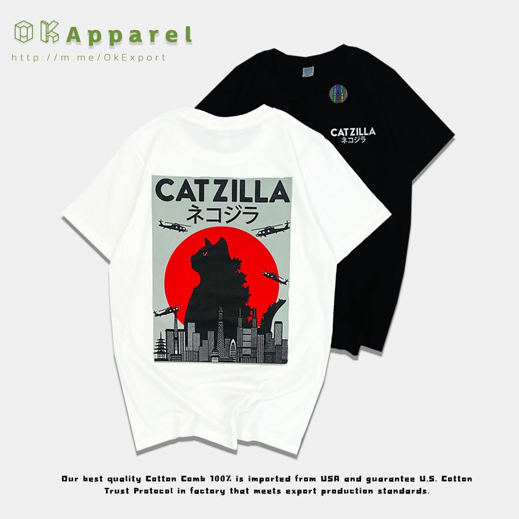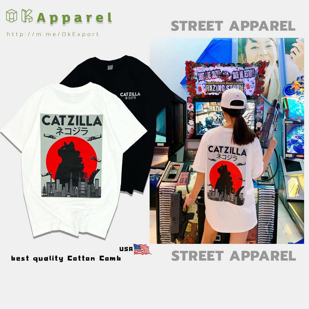 OK Apparel เสื้อยืดแขนสั้นคอกลม ลาย Catzilla ทรง oversize Cotton USA พร้อมส่ง