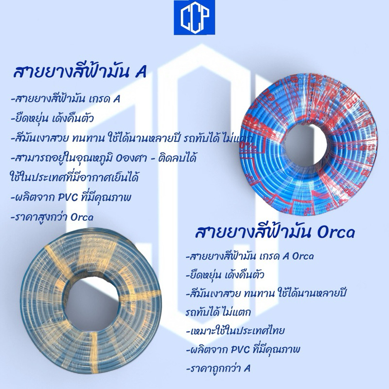 สายยางรดน้ำสีฟ้ามัน CCP เกรดA Orca/A 4หุน(1/2”)-2นิ้ว(2”) 30ม/50ม/100ม นิ่มเด้ง เงาสวย คุณภาพสูง