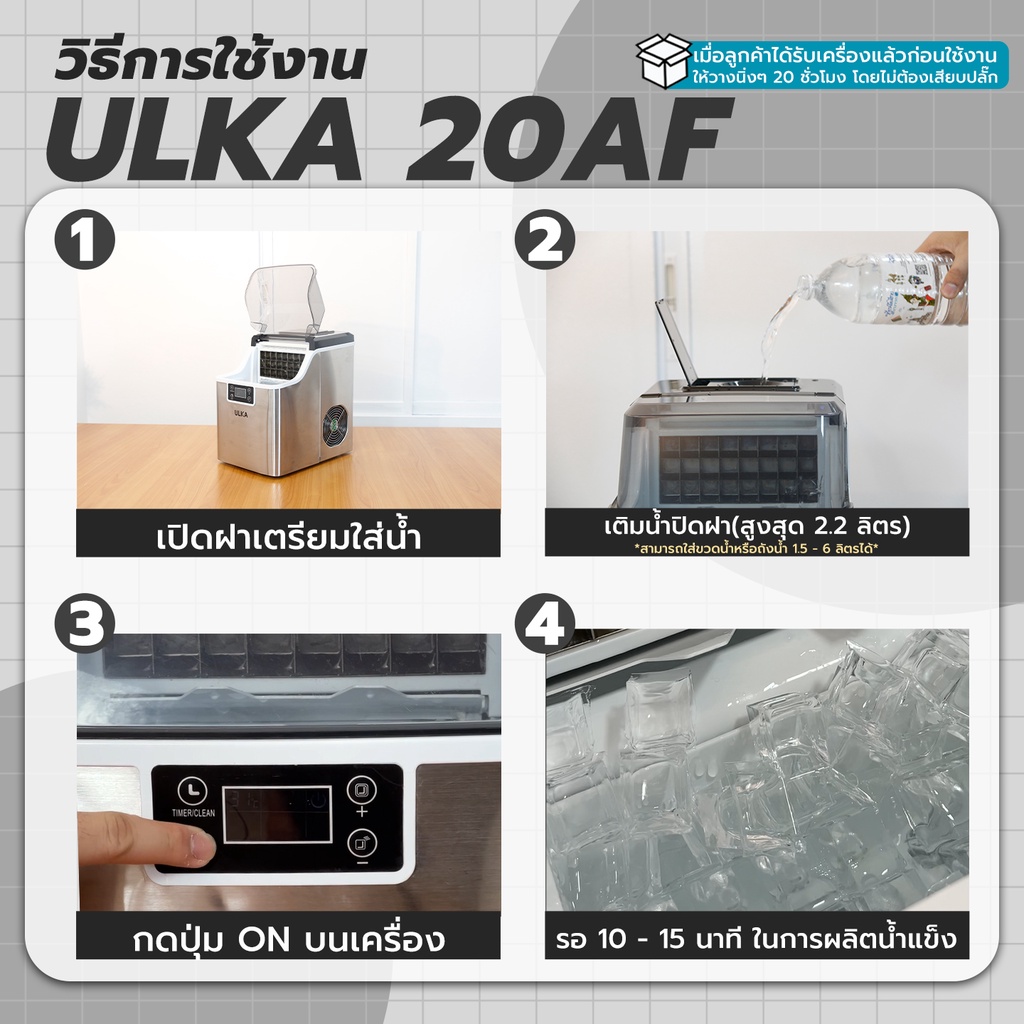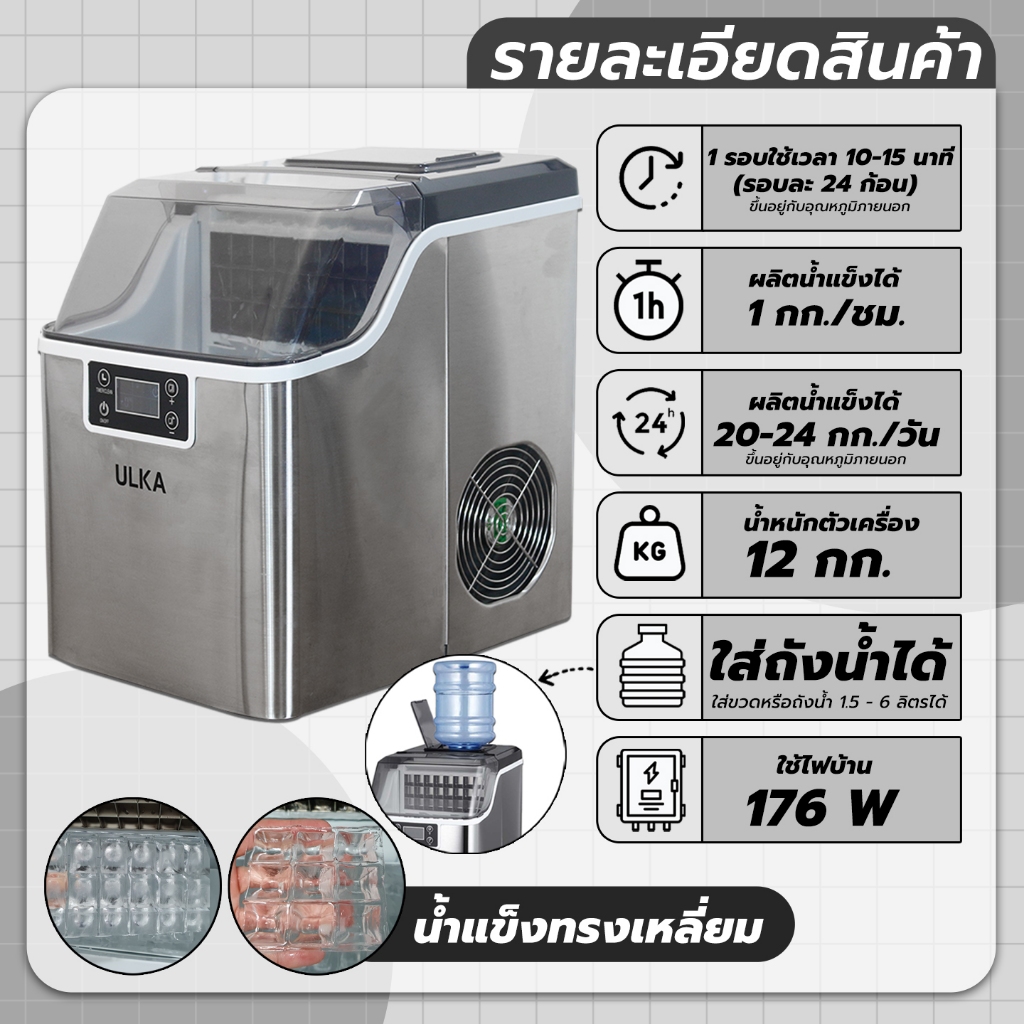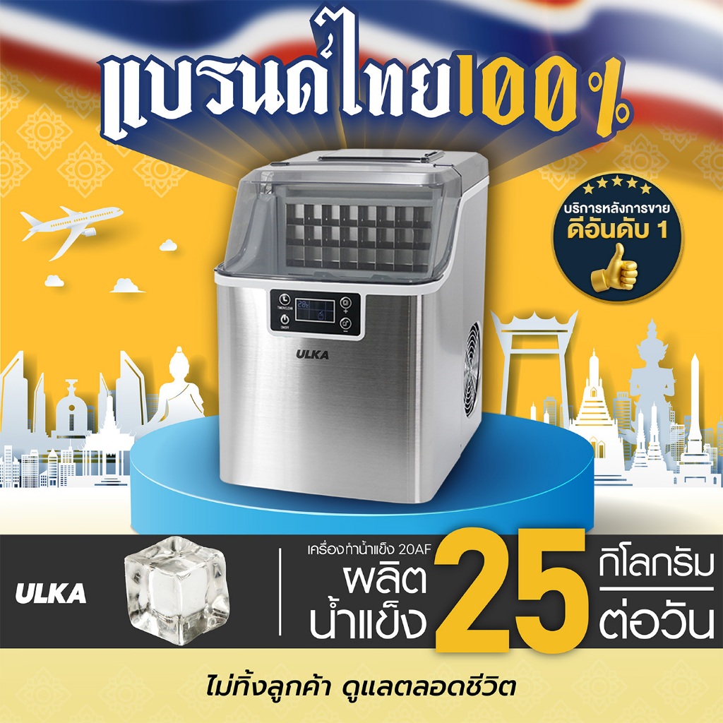 เครื่องทำน้ำแข็ง ULKA 20AF ทรง FullCube เครื่องทำน้ำแข็งอัตโนมัติ ขนาดกลาง 24 ก้อน/25กิโลกรัม/วัน