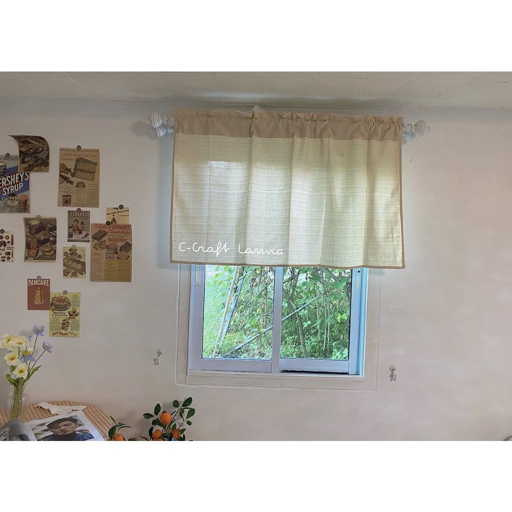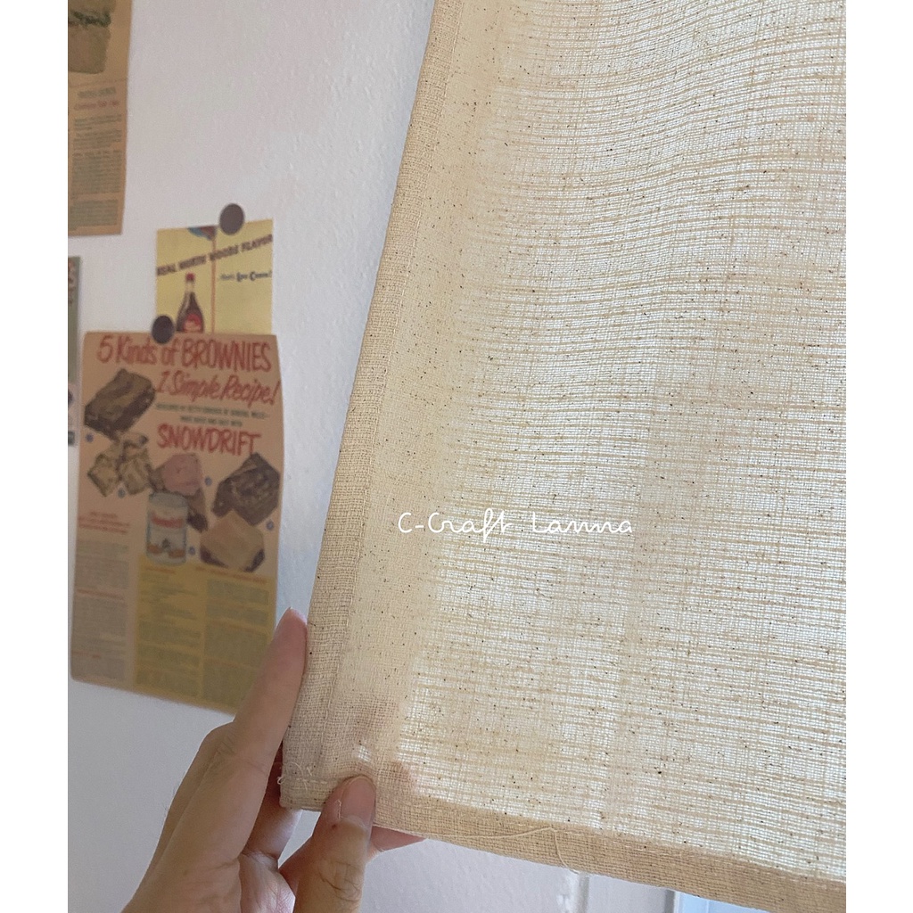 ผ้าม่านหน้าต่าง สไตล์มินิมอล ผ้าทอทึบสีครีม (สีดิบ) กว้าง110สูง60cm ผ้าม่านมินิมอล ผ้าม่านผ้าฝ้าย CMSN60