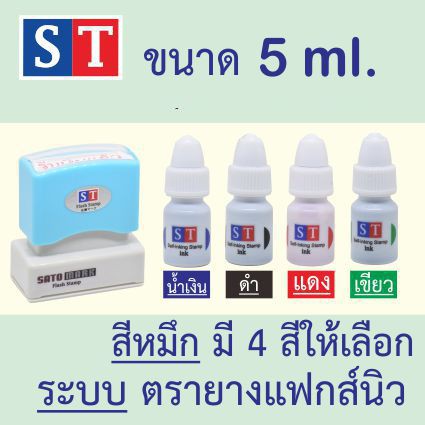 ST "หมึกเติมตรายาง" ระบบแฟกส์นิว ขนาด 5 ml และ 15 ml หมึกกันน้ำ คมชัด ที่สุด จากญี่ปุ่น