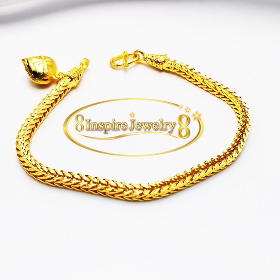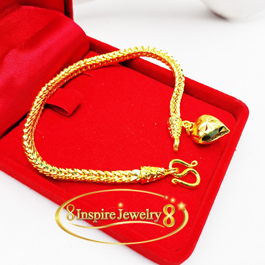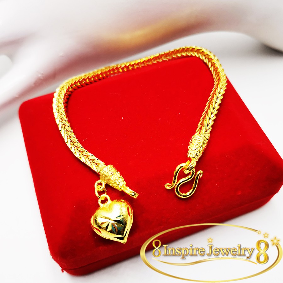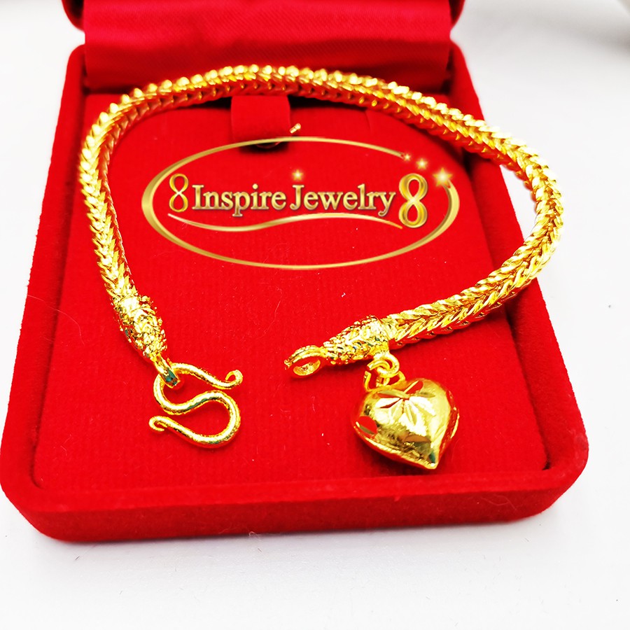 Inspire Jewelry สร้อยข้อมือลายสี่เสา ห้อยหัวใจทองตอกลาย เส้นขนาด 1 บาทพร้อมถุงกำมะหยี่ .