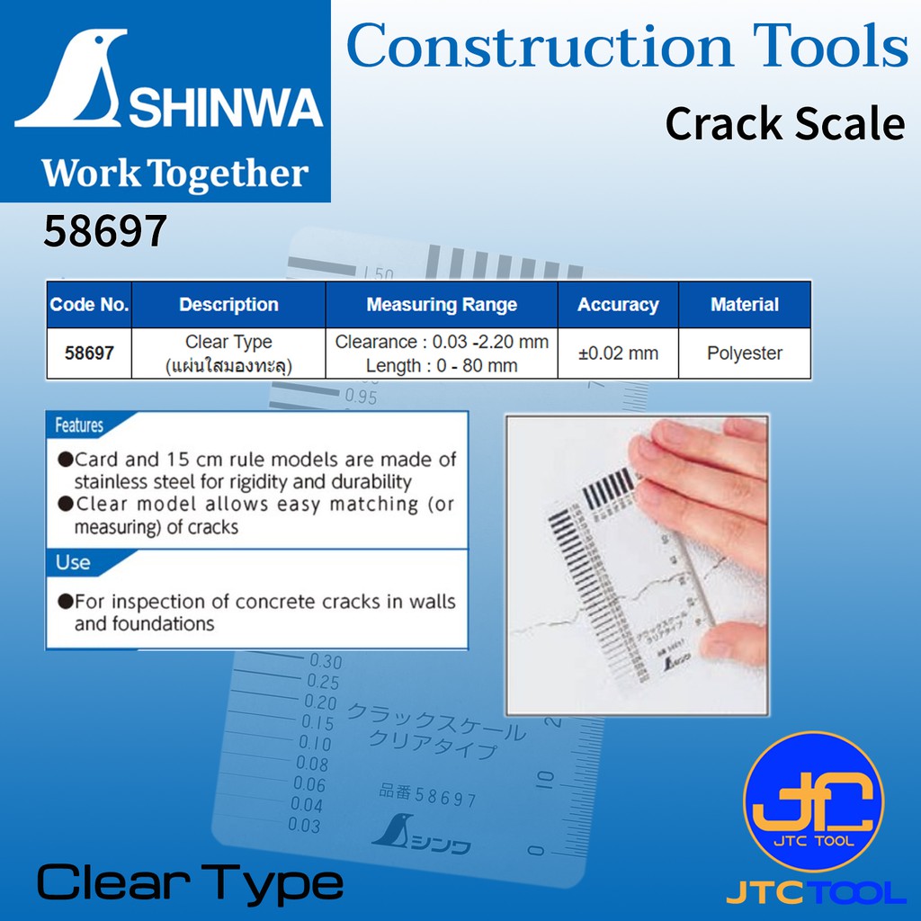 Shinwa แผ่นเช็ครอยร้าว แบบโปร่งใสมองทะลุ รุ่น 58697 - Crack Scale Clear Type No.58697