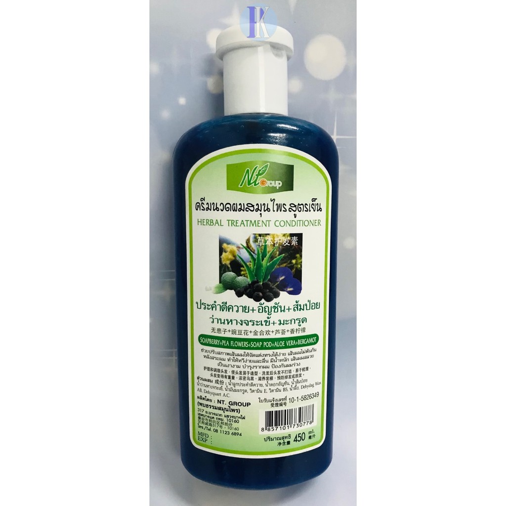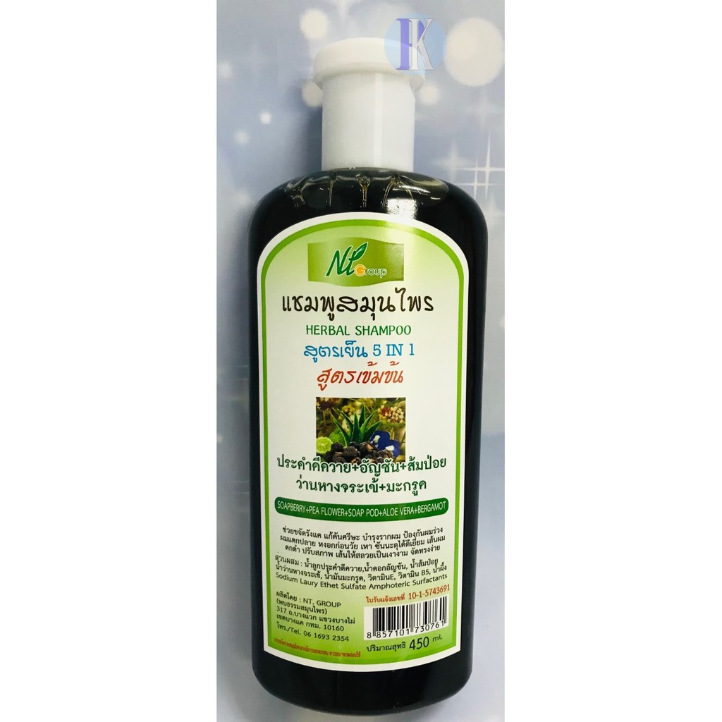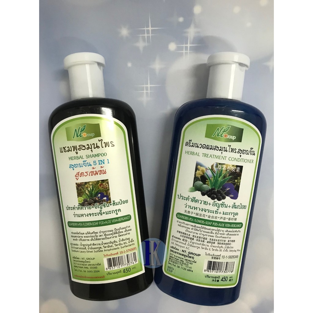 แชมพูสมุนไพรสูตรเย็น5in1และครีมนวด ประคำดีควาย+อัญชัน+ส้มป่อย+ว่านหางจระเข้+มะกรูด NT Groupขนาด 450ml