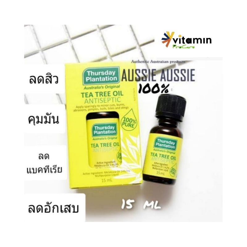 Thursday Plantation Tea tree oil 15 ml ลดสิว ทีทรีออย แท้100%ทีทีออย ลดแบคทีเรีย ครีมทาสิว ออสเตรียเลีย ทีทรีออย