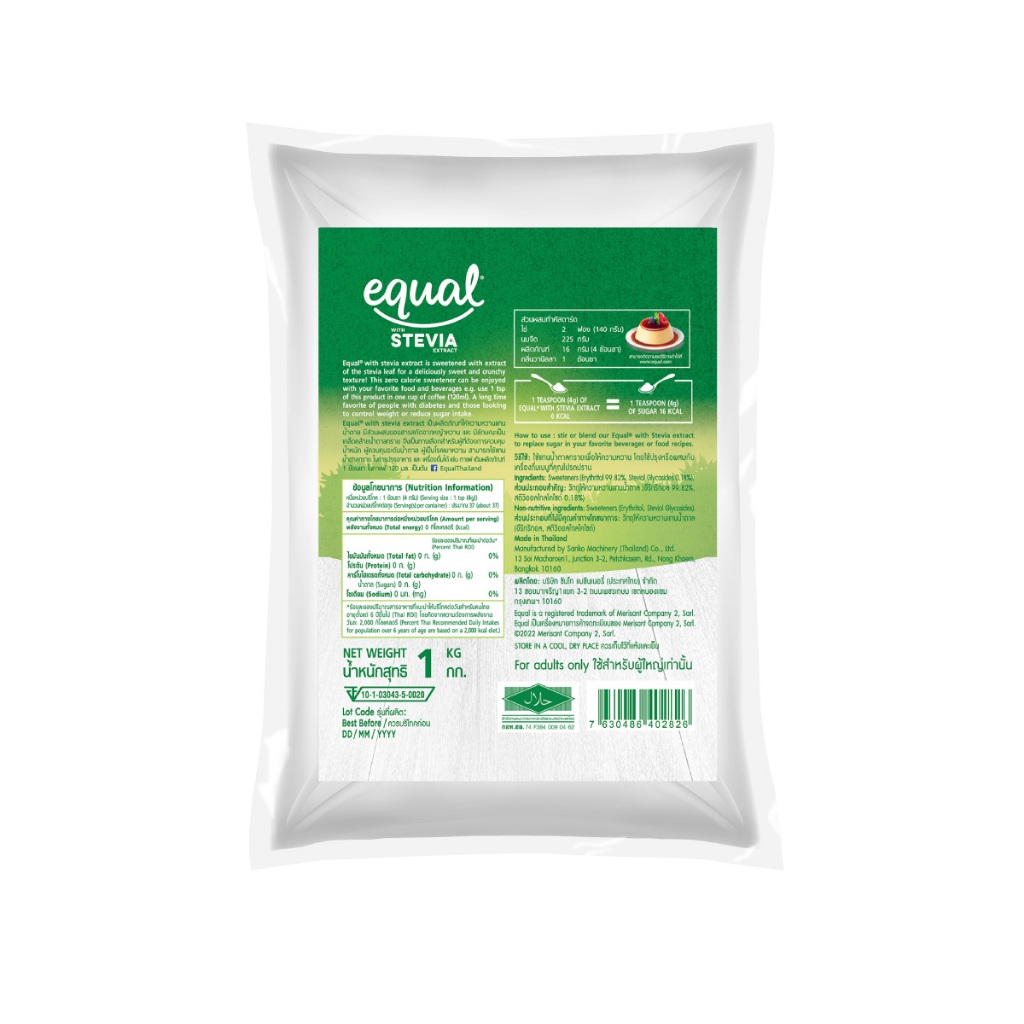 Equal Stevia หญ้าหวาน อิควล สตีเวีย ผลิตภัณฑ์ให้ความหวานแทนน้ำตาลจากหญ้าหวานธรรมชาติ ขนาด 1 กิโลกรัม 0 แคลอรี