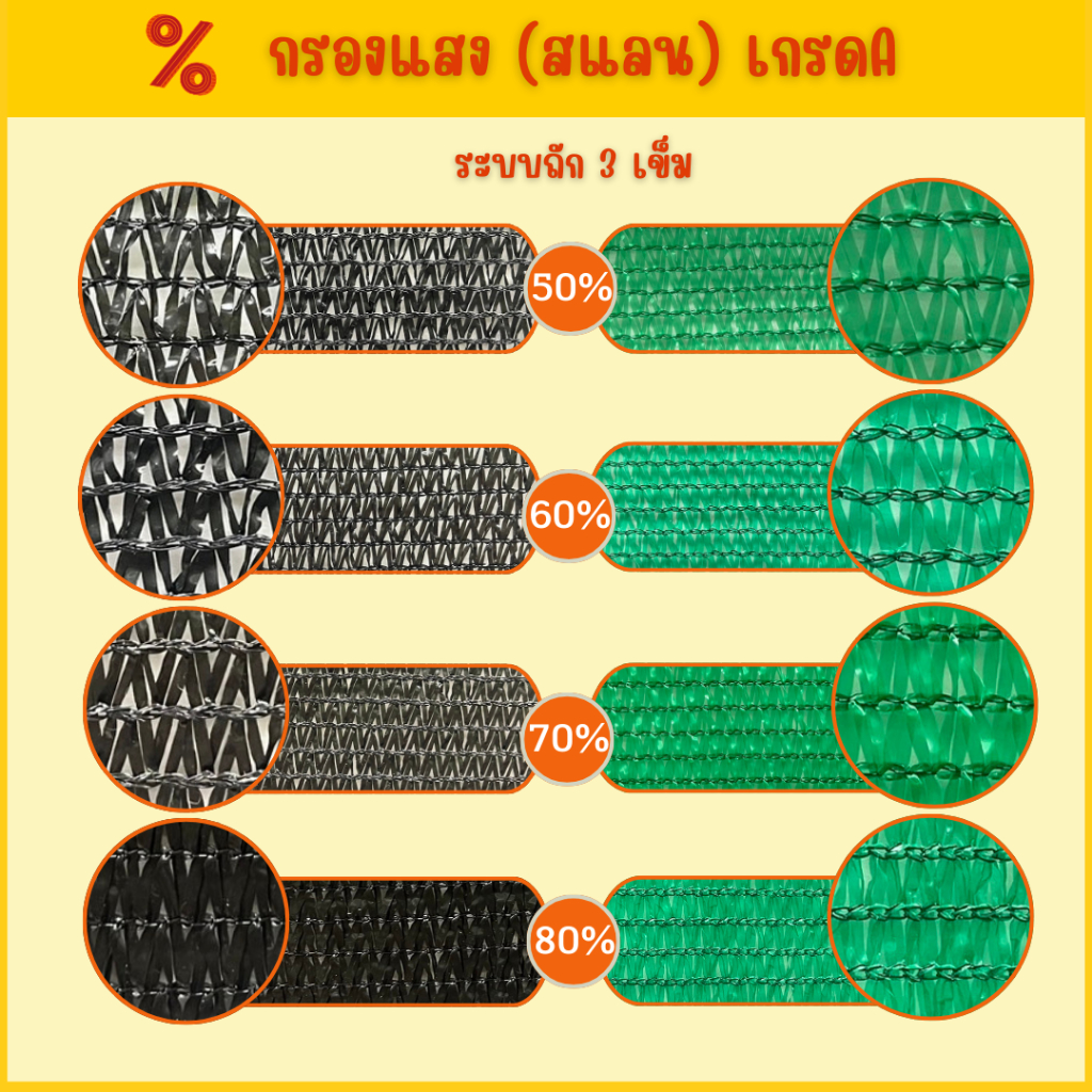 สแลนกรองแสง เกรด A หนา พร้อมสารป้องกัน UV หน้ากว้าง 2ม.