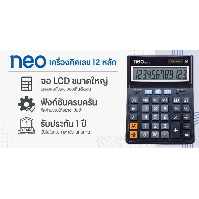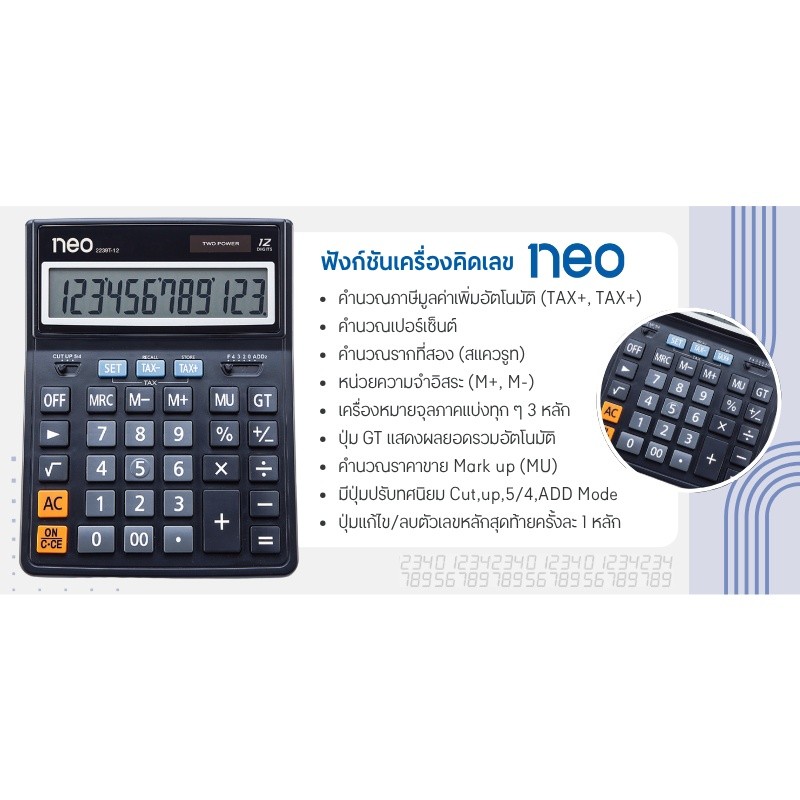 NEO เครื่องคิดเลข 12 หลัก รุ่น 2239T-12 สีดำ