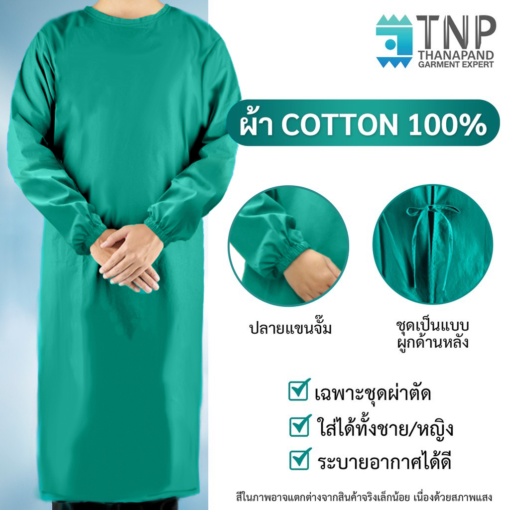 ชุดแพทย์ผ่าตัด สีเขียว ปลายแขนจั๊ม ผูกเชือกด้านหลัง มี 2เนื้อผ้า รหัส : G103 (ฐานะภัณฑ์)