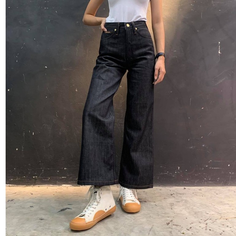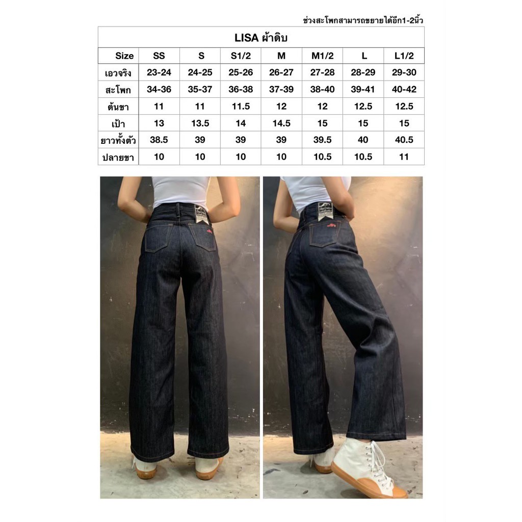 LS001 กางเกงยีนส์ผู้หญิง เอวสูงขาบาน ผ้ายีนส์ดิบ (Gasoline & Garage) ปั๊มน้ำมันแก๊สโซลีน (SUP TWO)