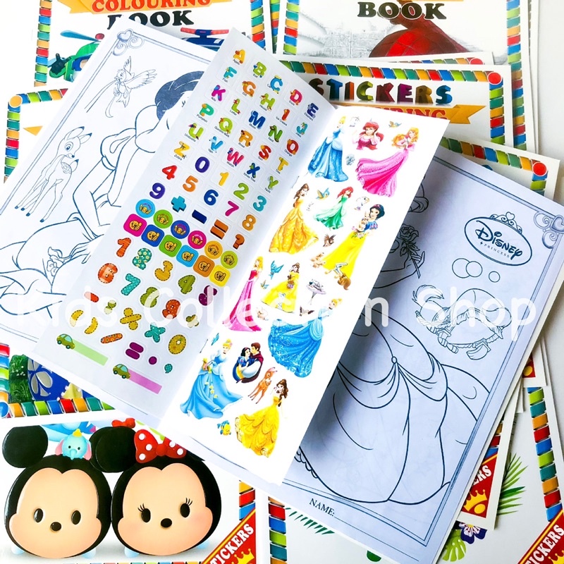 สมุดภาพระบายสี+สติ๊กเกอร์ ขนาด A4 มาพร้อมสติ๊กเกอร์การ์ตูน ACB ตัวเลข เสริมสร้างจินตนาการให้เด็กๆ