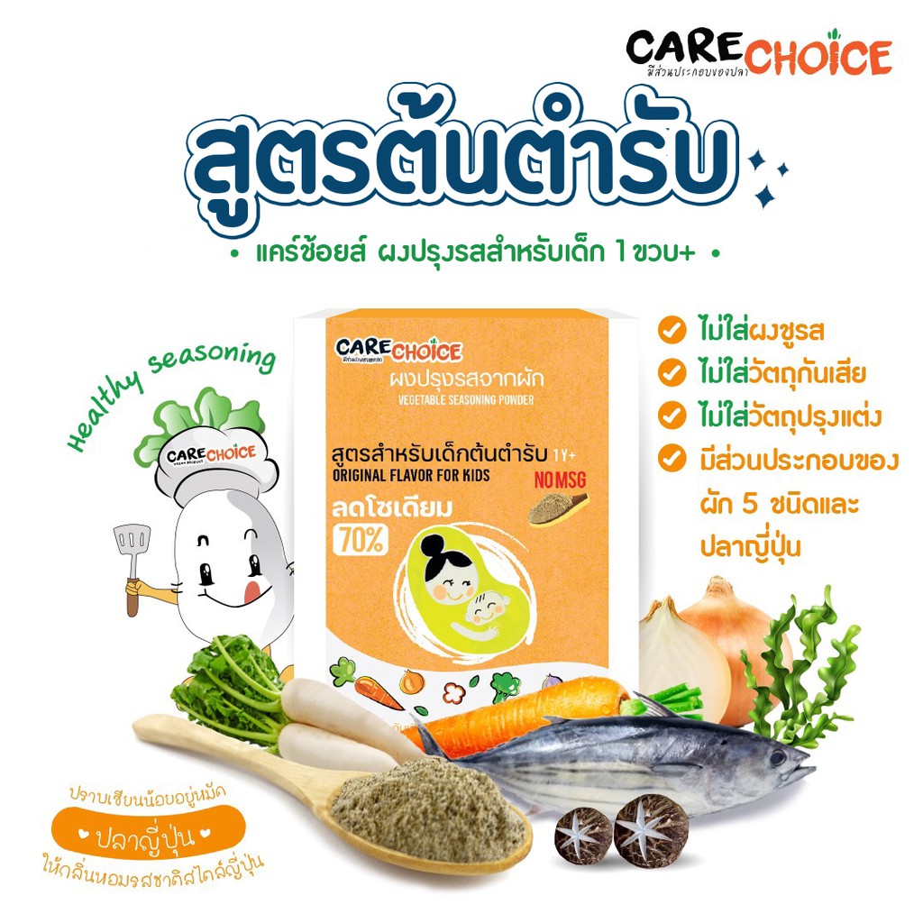C019 แคร์ช้อยส์ ผงปรุงรสสำหรับเด็ก สูตรต้นตำรับสำหรับเด็ก (1 ขวบ+) 150กรัม ผงปรุงรสจากผัก