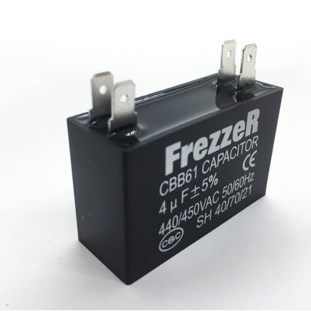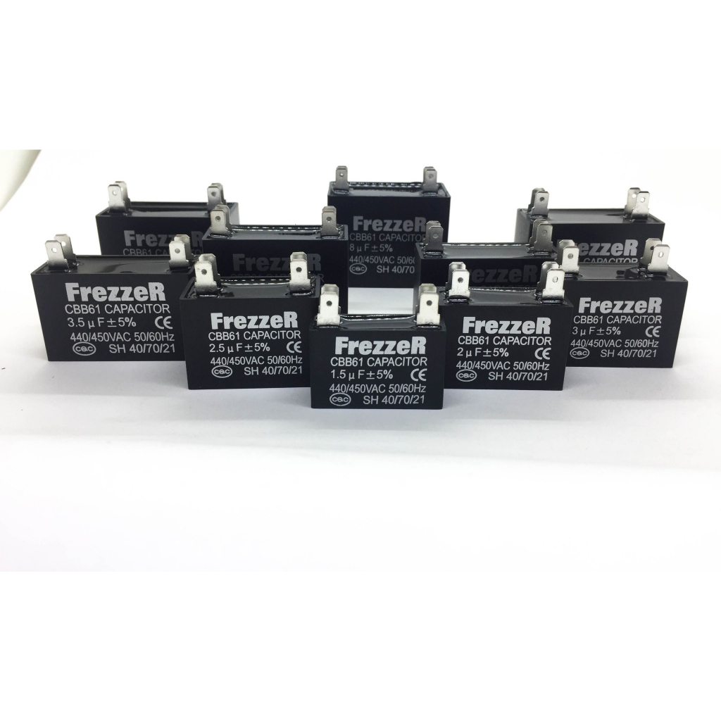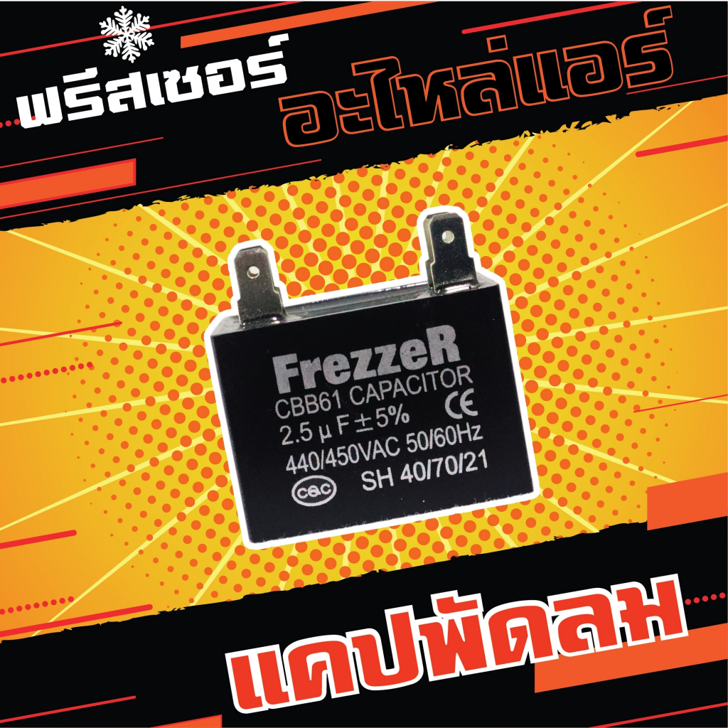 คาปาซิเตอร์ “แคปพัดลม” 1.5 - 8 ไมโครฟารัด แบบเสียบ ยี่ห้อ FREZZER เกรดคุณภาพ สำหรับ เครื่องปรับอากาศ