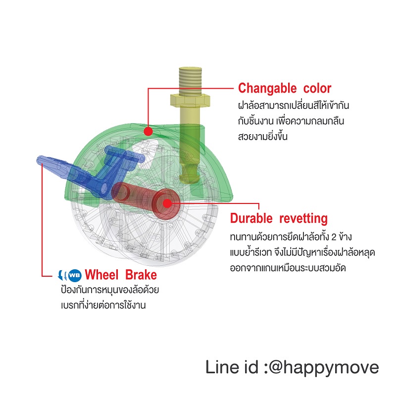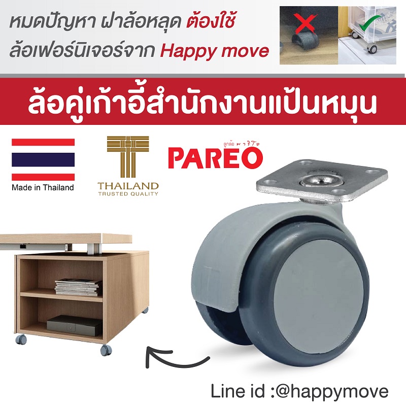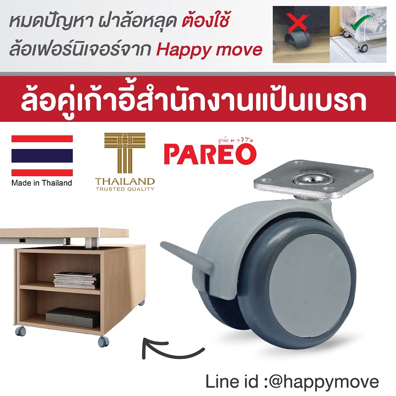 ล้อเฟอร์นิเจอร์ อะไหล่ลูกล้อ ล้อไม่แตก สินค้าโรงงานไทย แป้นหมุน,แป้นเบรก ขนาด 1.5, 2 นิ้ว รุ่น Two Tone ยี่ห้อ PAREO