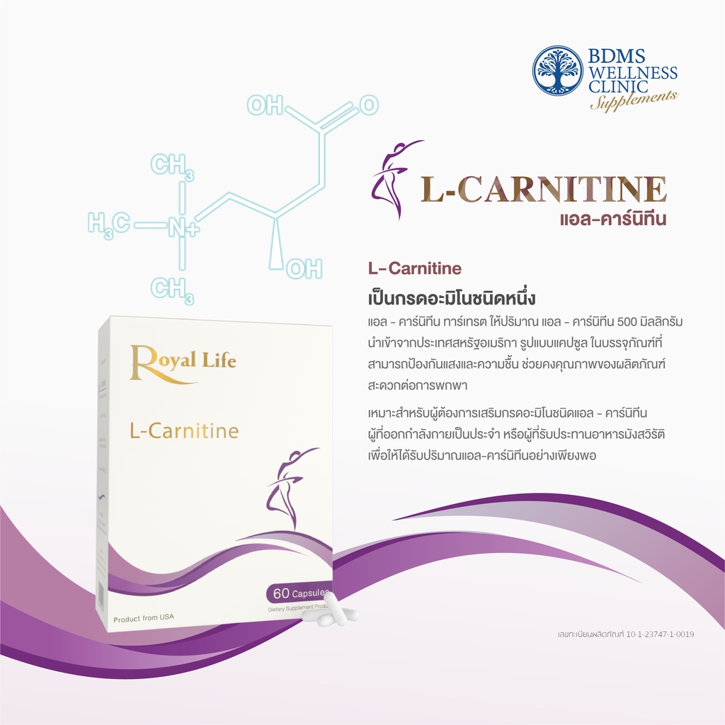 L-Carnitine (แอลคาร์นิทีน) วิตามินเพิ่มการเผาผลาญ (60 แคปซูล)