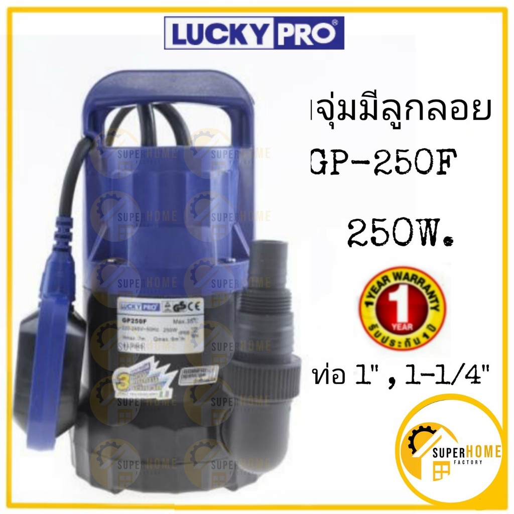 💥แท้ ส่งด่วน💥LUCKYPRO ปั๊มแช่ ไดโว่ ปั๊มจุ่ม มีลูกลอย ขนาด 1" - 1.1/4" รุ่น GP250 , GP250F ลักกี้โปร ลูกลอย