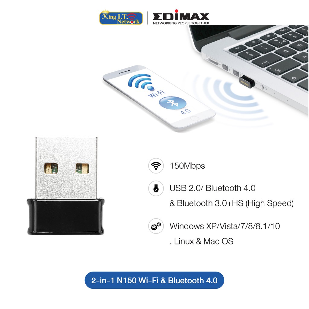 EDIMAX (EW-7611ULB) N150 Wi-Fi & Bluetooth 4.0 Nano Wireless USB Adapter