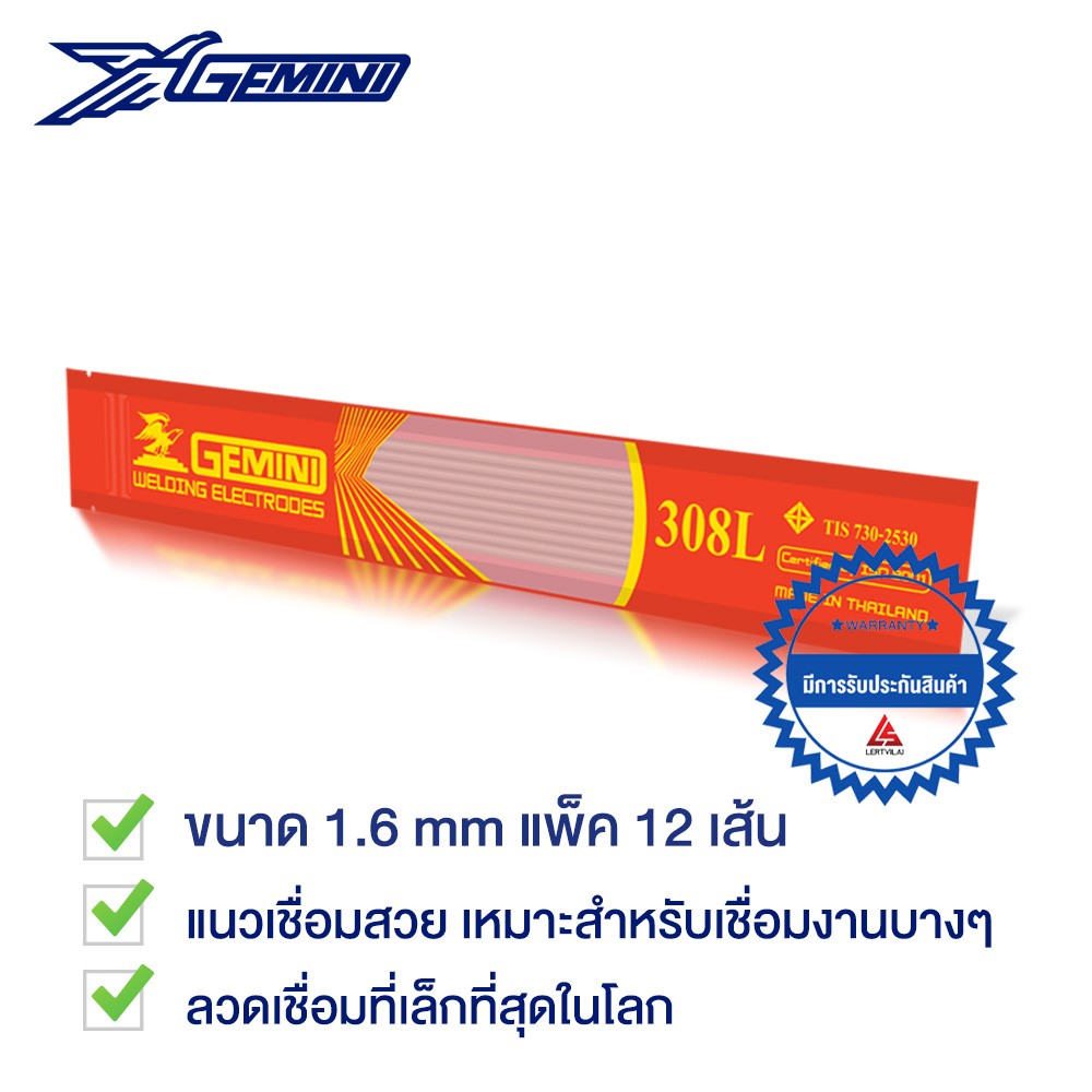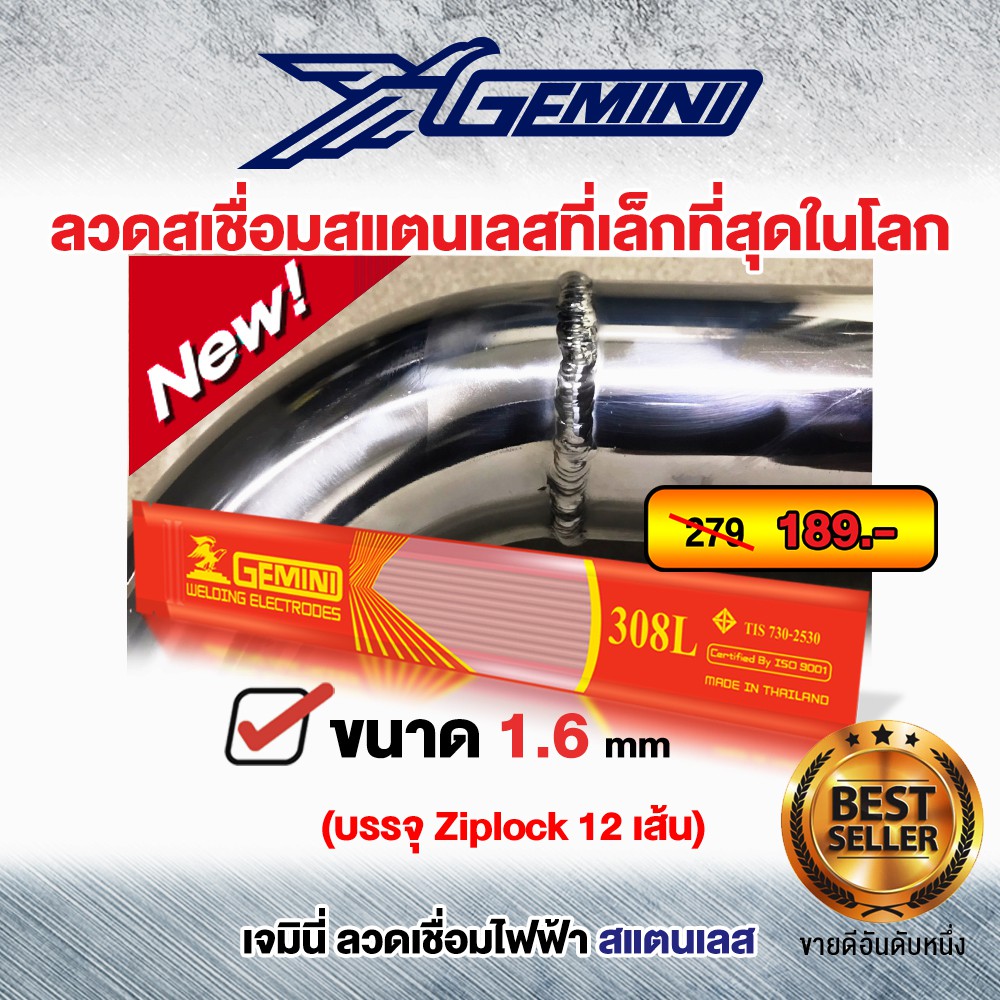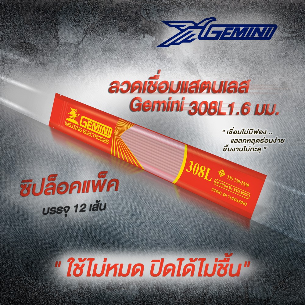 GEMINI (เจมินี่) 308L 1.6มม. ลวดเชื่อมสแตนเลส 1.6 x 300 mm แพค Ziplock (12 เส้น)