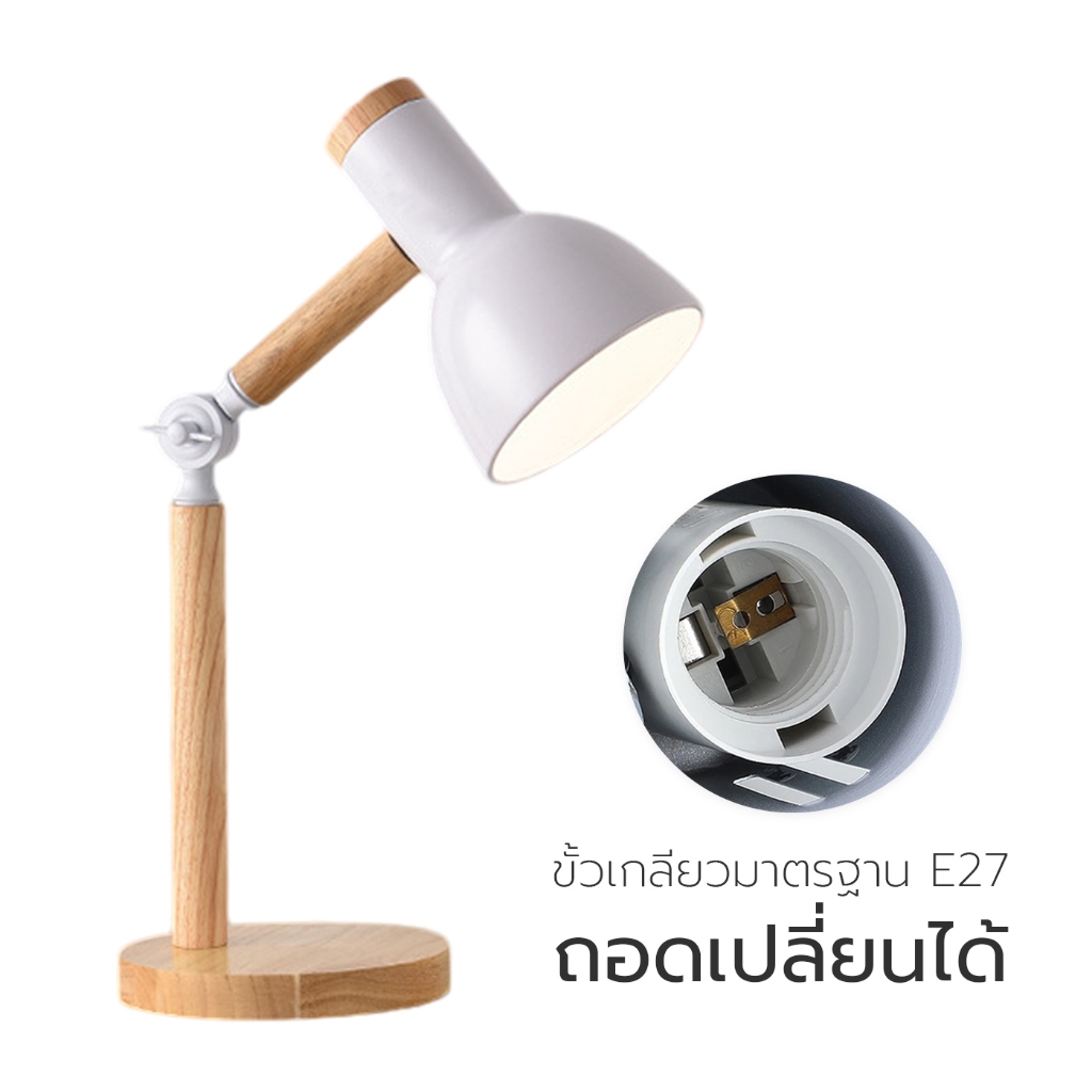 Cheers9 โคมไฟตั้งโต๊ะ โคมไฟอ่านหนังสือ ไฟมินิมอล LED wooden table lamp สวิตซ์ปิด-เปิด ขั้ว E27