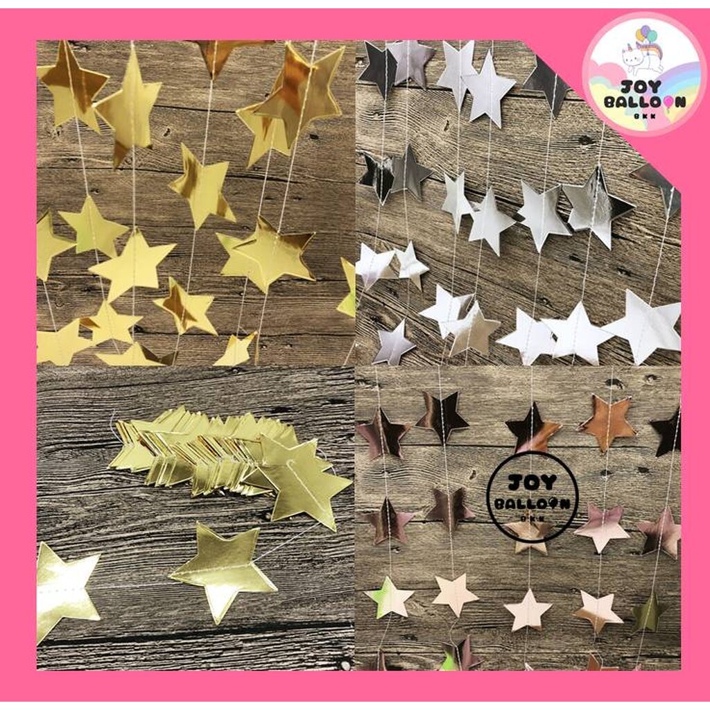 ดาวกระดาษ หัวใจกระดาษ ธงราวตกแต่ง ยาวรวม 4 เมตร เส้นดาวเย็บด้วยด้ายเย็บผ้า ป้ายแขวนสำหรับปาร์ตี้ งานวันเกิด งานเลี้ยง...