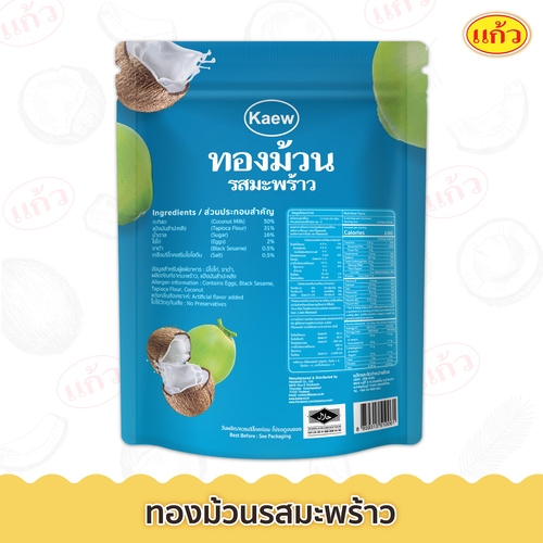 แก้ว ทองม้วนกะทิแท้ รสมะพร้าวต้นตำหรับ ขนาด 80 กรัม ( ของฝาก กาญจนบุรี ขนมไทย ขนมกรุบกรอบ ขนมกินเล่น )