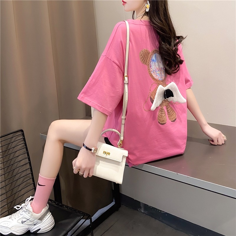 เสื้อผู้หญิงแขนสั้น Oversize {อก 50 นิ้ว} แต่งปีกนกสีขาวด้านหลัง ผ้าคอตตอล สินค้าพร้อมส่ง A59