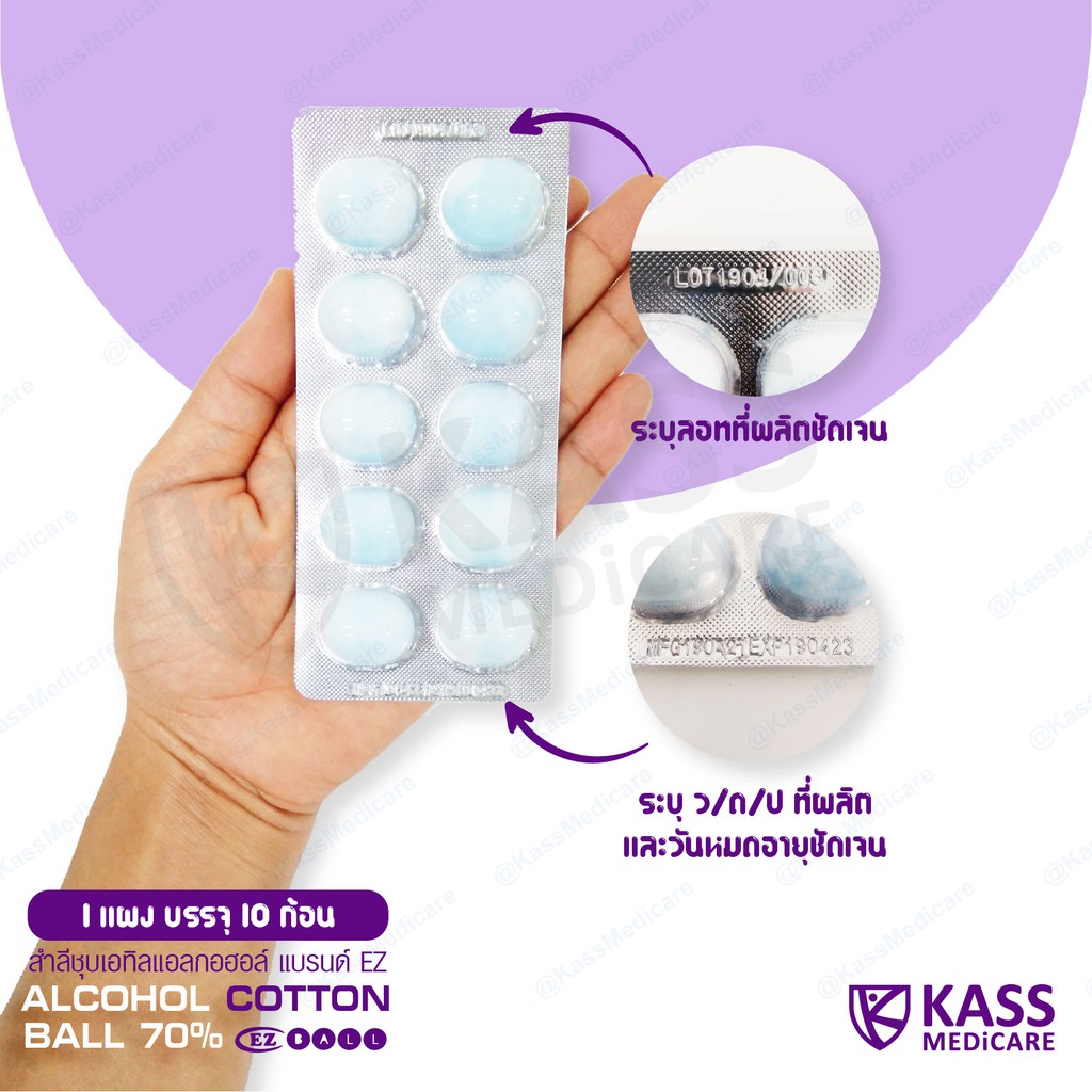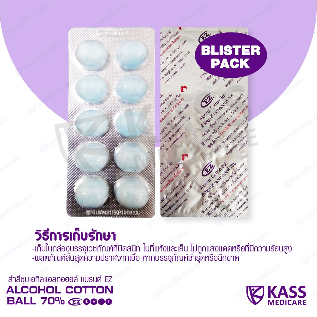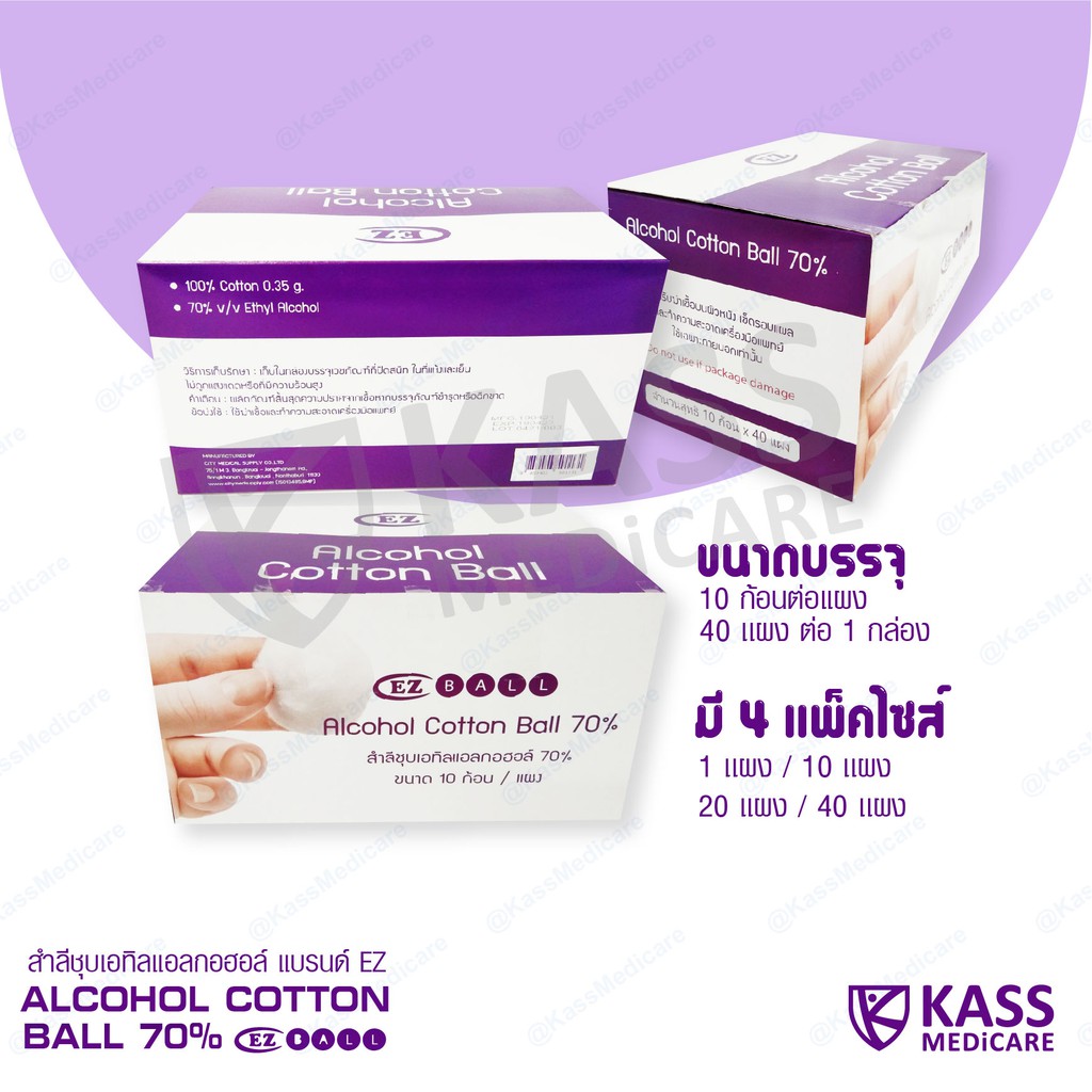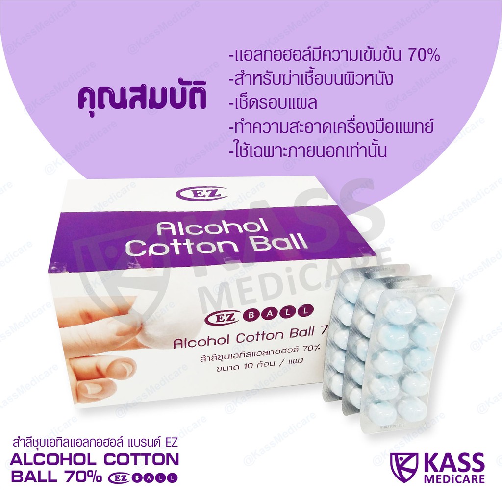 (10 แผง) สำลีชุบเอทิลแอลกอฮอล์ แบรนด์ EZ (Alcohol Cotton Ball 70%)