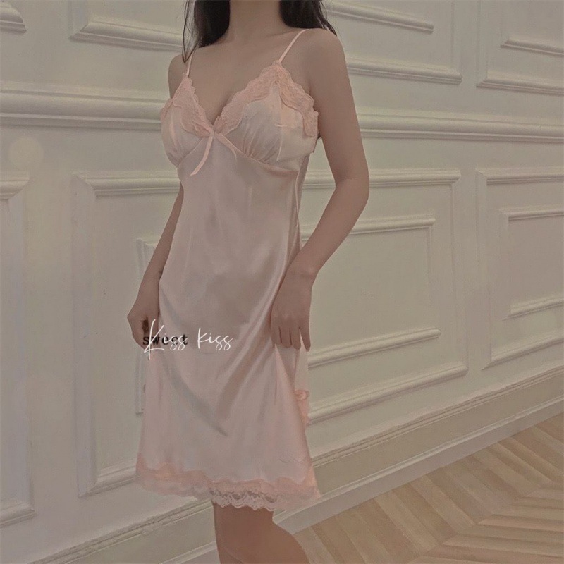 #512 ชุดนอนผ้าไหมลูกไม้ สุดเซ็กซี่ แถมฟรีจีสติงชุดเซ็ต สำหรับผู้หญิง COK