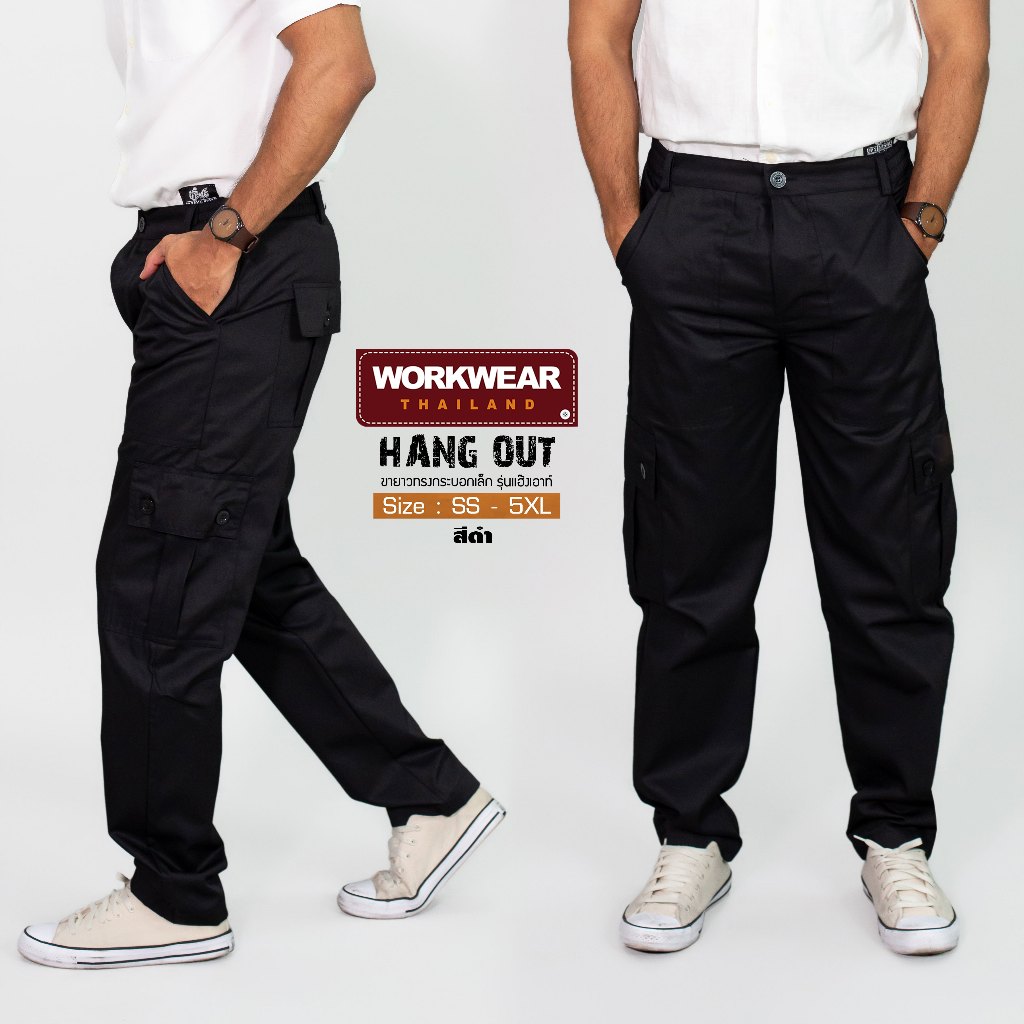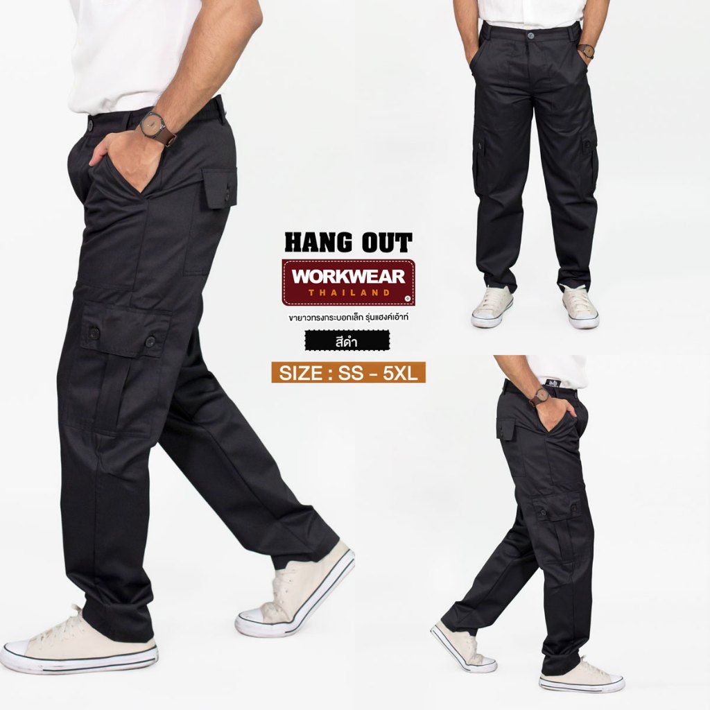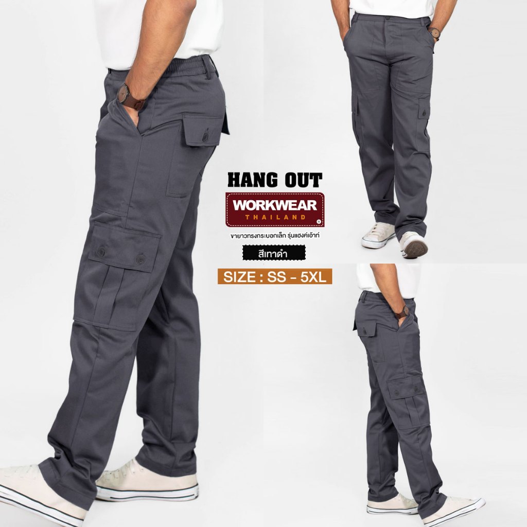 WORKWEAR :กางเกงวินเทจ รุ่น Hang Out ขายาว กระบอกเล็ก 6 กระเป๋า เอว 37-47 นิ้ว คาร์โก้ WORKWEARTHAILAND