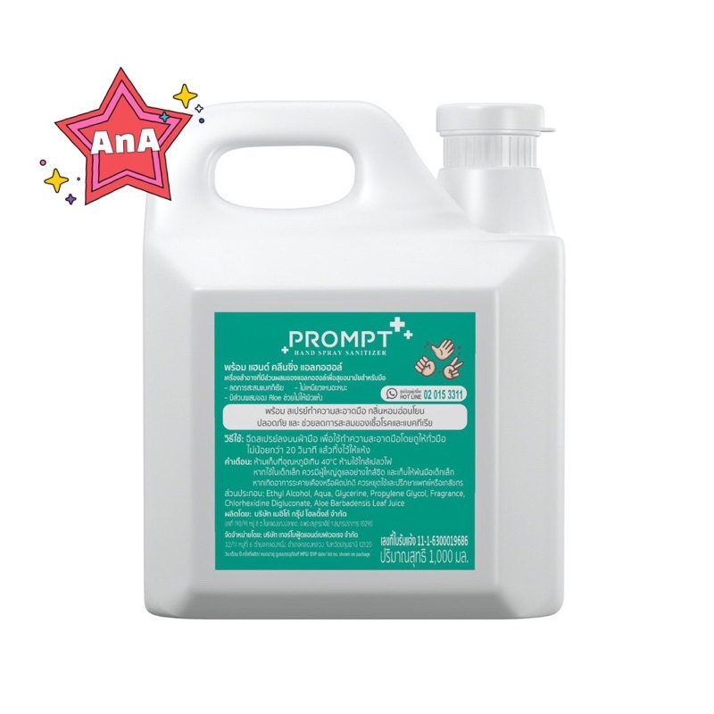 PROMPT แอลกอฮอล์ แฮนด์สเปรย์ #9 ล้างมือ 1 ลิตร Alcohol Spray 1,000 ml คุ้มมาก พร้อมส่ง