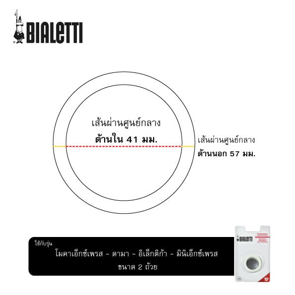 Bialetti อะไหล่ซีลยางและแผ่นกรองสำหรับ ขนาด 2 ถ้วย/BL-0800038-2