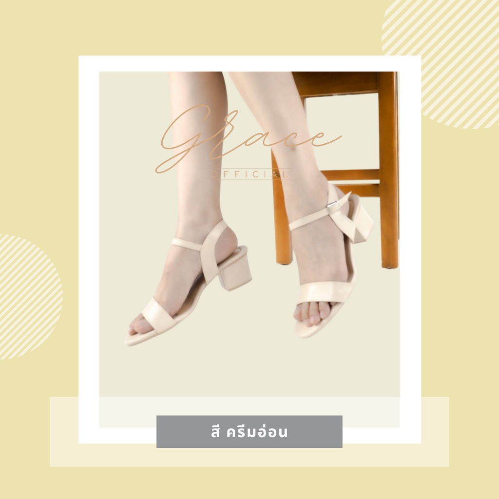 GRACE รัดข้อ ไซส์ 36-43 รองเท้าส้นสูง 2 นิ้ว ไซส์ 42 43 รองเท้าแฟชั่นน่ารัก ผู้หญิง