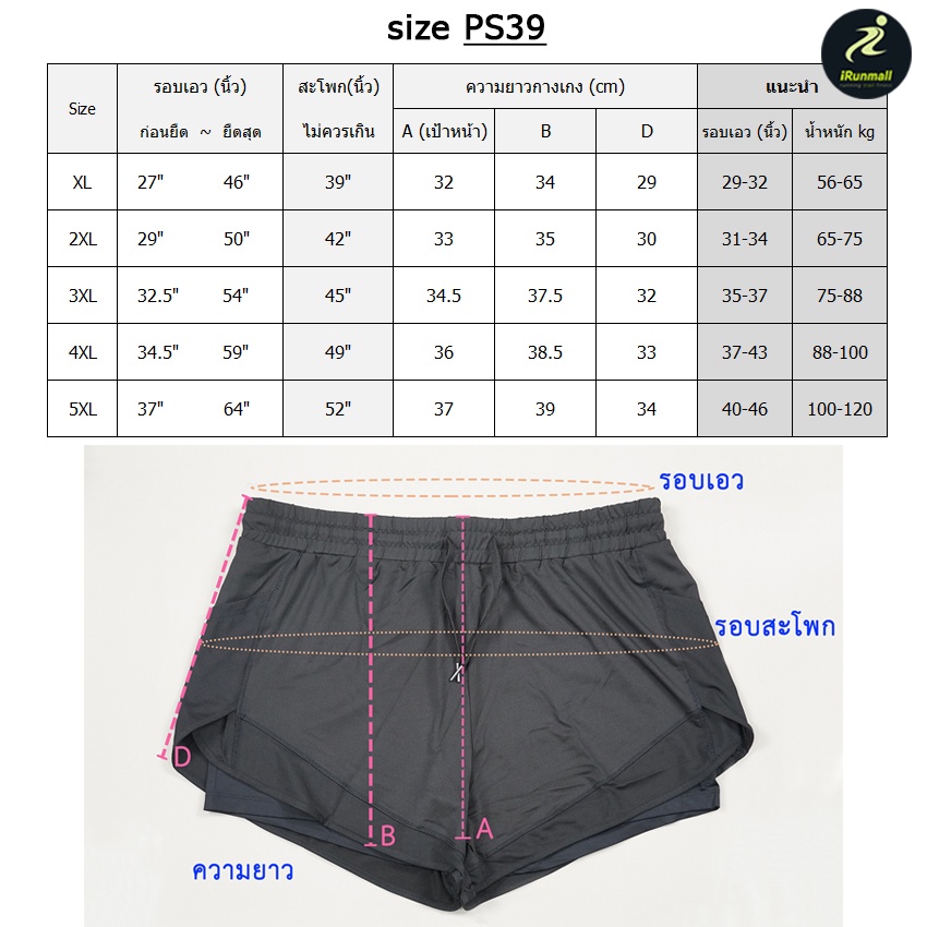 (5XL-XL) กางเกงวิ่งขาสั้นผู้หญิง ไซส์ใหญ่ คนอ้วน สาวอวบ พลัสไซส์ ออกกำลังกาย มีซับใน กระเป๋าข้าง iRunmall #PS39