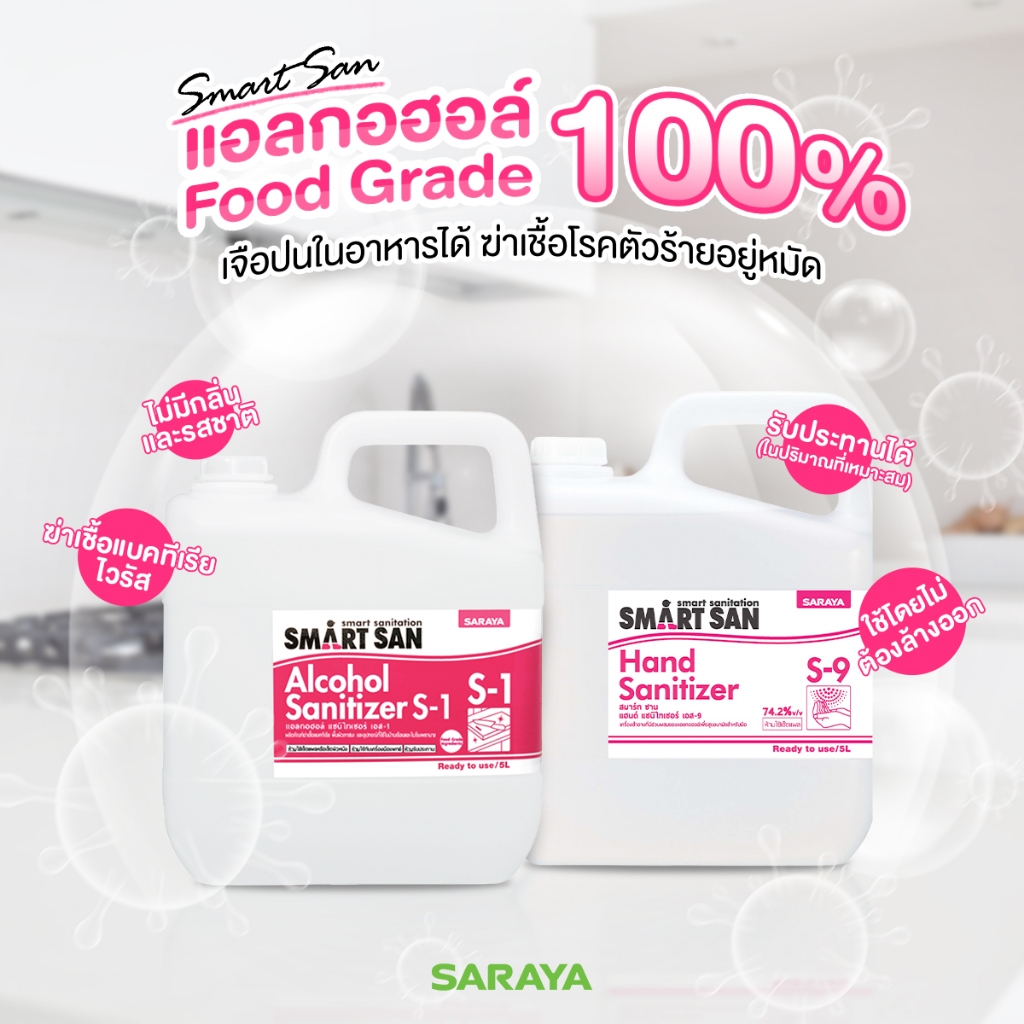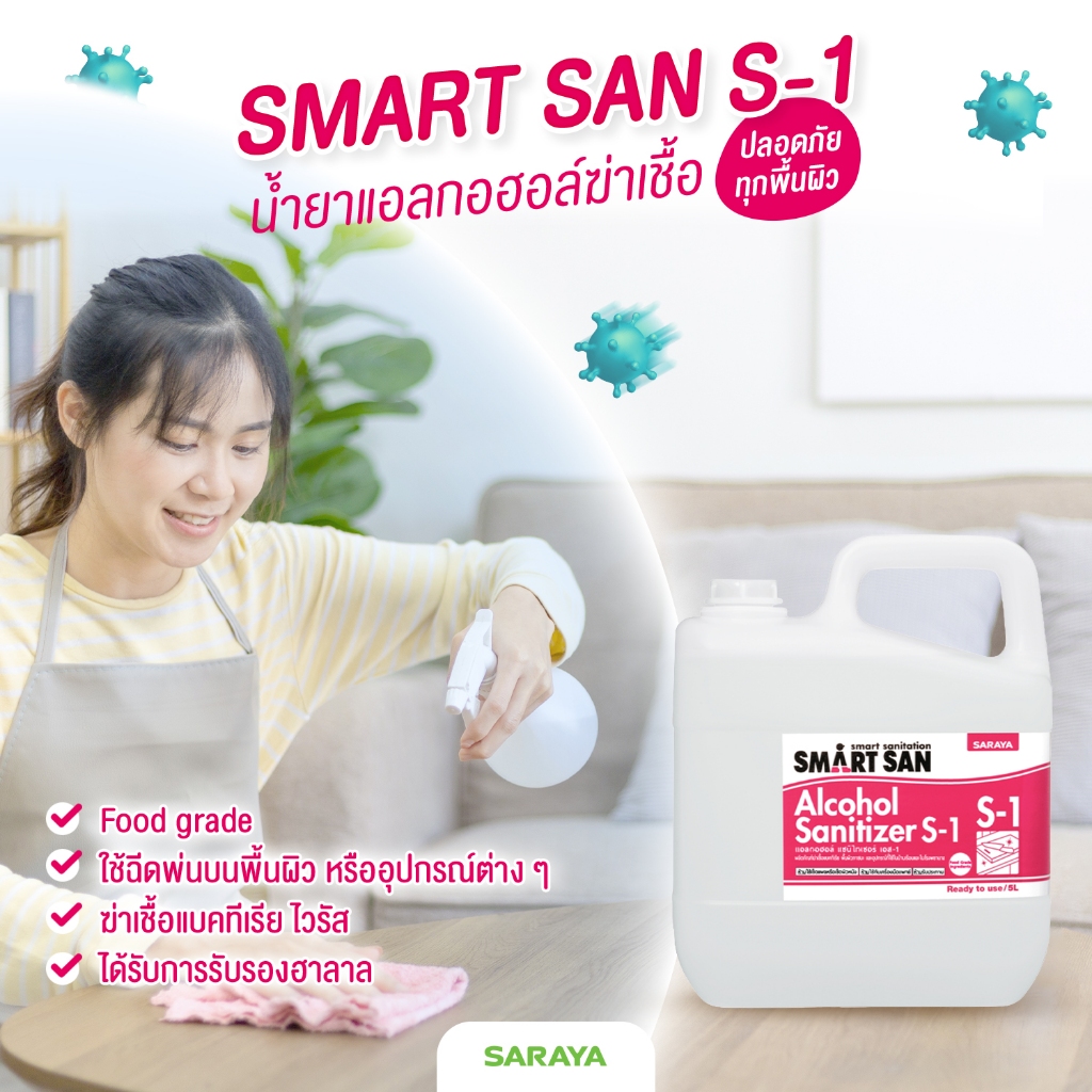 แอลกอฮอล์ฆ่าเชื้อ สมาร์ท ซาน เอส-1 (แกลลอน 5 ลิตร) : Saraya Smart San Alcohol Sanitizer S-1 5L