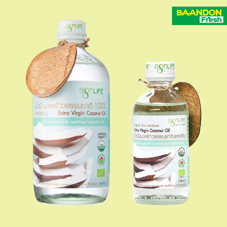 น้ำมันมะพร้าวสกัดเย็น ตรา อะกริไลฟ์ (agrilife) ออร์แกนิค organic ขนาด 120 ml และ 450 ml