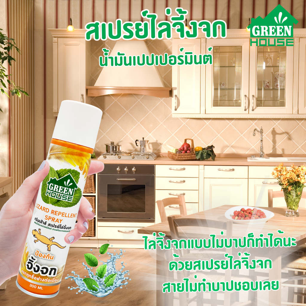 สเปรย์ ไล่จิ้งจก ตุ๊กแก 300 มล. หัวฉีดรุ่นพิเศษ สูตรธรรมชาติ GREEN HOUSE LIZARD REPELLENT SPRAY