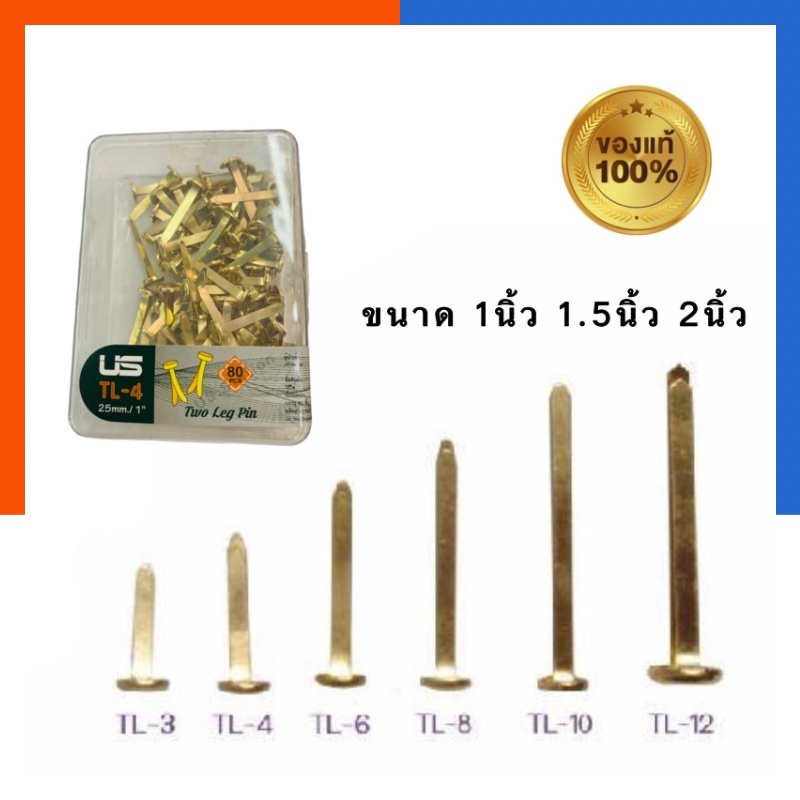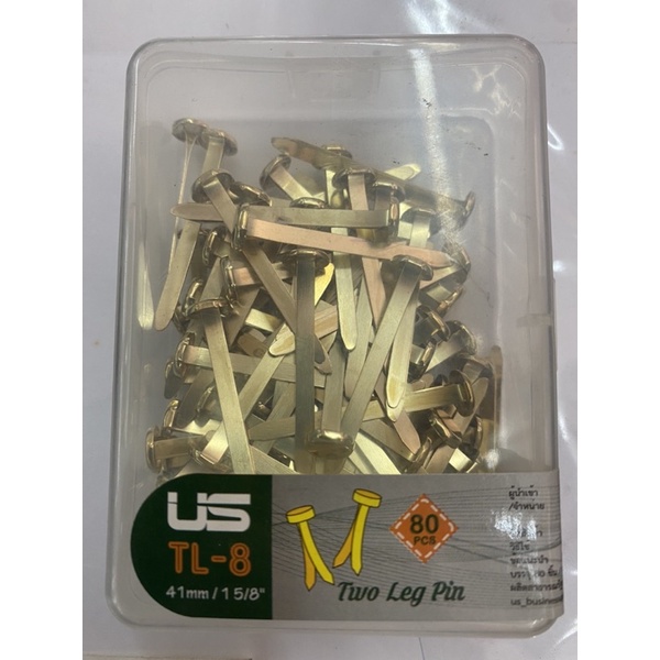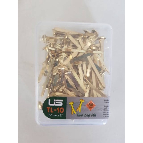 หมุดทองเหลือง เป๊กทองเหลือง หมุดสำนวน ยี่ห้อ US 0.75/1/1.5/2/2.5นิ้ว บรรจุ 80ตัว หมุดลิ้นแฟ้มโลหะ หมุดสองขา US.Station