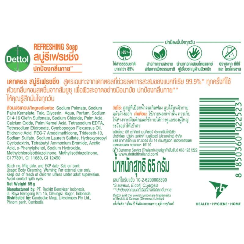 Dettol เดทตอล สบู่เดทตอล สบู่อาบน้ํา สูตรรีเฟรชชิ่ง 100 กรัมX8