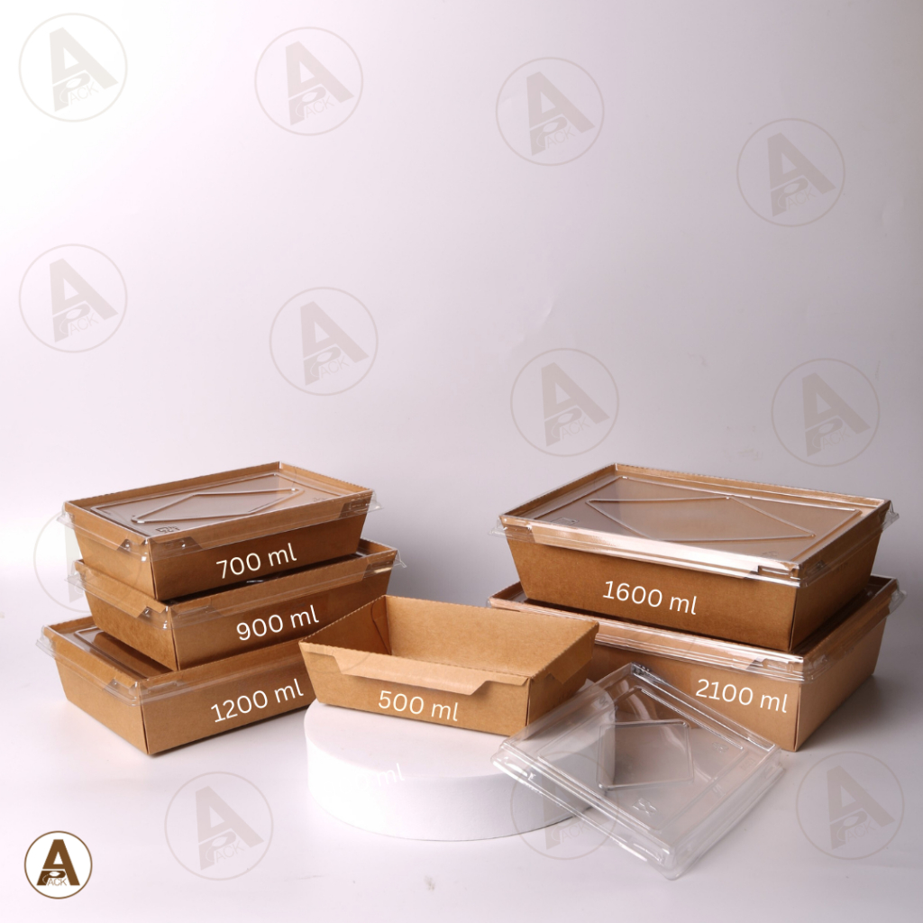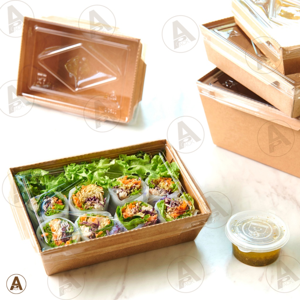 (25,50ชิ้น/แพ็ค) กล่องอาหารกระดาษ พร้อมฝาพลาสติก กล่องข้าวกระดาษ กล่องอาหารเดลิเวอรี่ ทนร้อน กันมัน